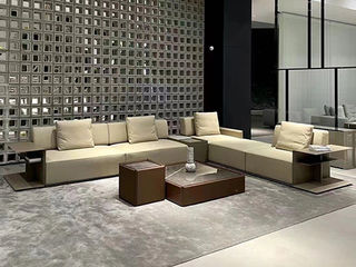 梵纳意简 极简 接触面头层牛皮+多层实木板+实木框架+高回弹海绵+碳素钢五金+羽绒 右转角沙发 网红 极简罗杰4.2米沙发