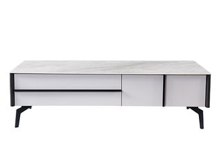 CBD家居 现代简约 雅士白哑光岩板+环保烤漆磨砂柜体+碳素钢黑砂五金脚 图片色 2米电视柜