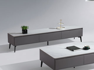 【套餐专享价】每屋优享系列 现代简约 中纤板烤漆+岩板+碳素钢脚架 雪山白亮光 2米电视柜(未开电源孔)