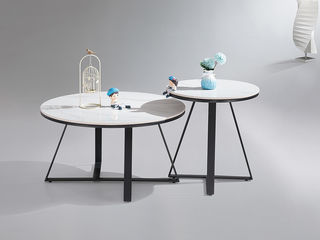 鹿屿 现代 0.48米天然油风石细花白+深灰亚光烤漆(环保中纤板E1板)圆形边几