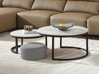小红书系列 现代简约 桌面:灰色水纹玻璃脚架:大理石 0.9米圆茶几