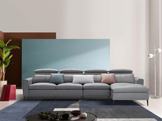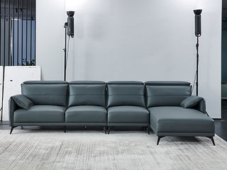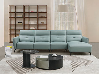 CBD家居 现代简约 接触面真皮+非接触面仿皮+东亚海绵+云杉木实木主框架 TE07天青色 1+3+左手贵妃 转角3.156米沙发