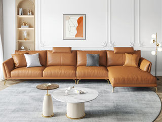 德卡图 现代简约 接触面进口头层牛皮+高密度海绵+俄罗斯进口落叶松框架 1+3+左贵妃位 浅棕色 皮艺转角3.36米沙发