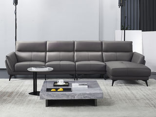 德卡图 现代简约 接触面进口头层牛皮+高密度海绵+俄罗斯进口落叶松框架+扶手羽绒+靠背公仔棉+可活动头枕 1+3+左贵妃位 深灰色 皮艺转角3.57米沙发