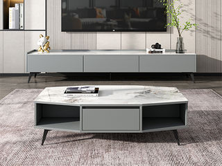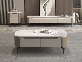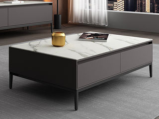 B系优选 现代简约 岩板+E1级环保板材+烤漆+实木抽屉+碳素钢 1.3米茶几