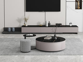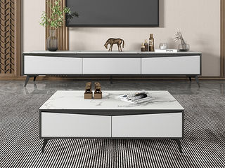 B系优选 现代简约 中纤板(MDF)亮光烤漆+岩板台面+实木松木抽屉 香奈儿 拉伸电视柜(未开电源孔)