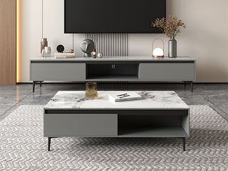 【套餐专享价】每屋优享系列 现代简约 亮光岩板+免漆板+高碳素钢脚 图片色 1.3米茶几