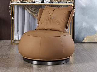 卡芙妮 极简 进口落叶松+多层实木板+高回弹海绵+蛇形弹簧+碳素钢五金+生态真皮+旋转功能 图片色 休闲椅