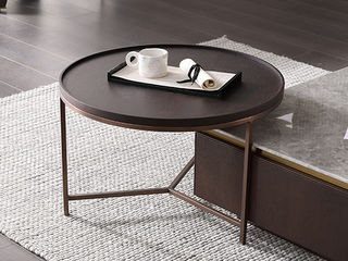 梵歌 现代简约 E1环保中纤板 环保水性漆 烟熏木皮 高密度三胺板 石面 碳素钢五金脚 烟熏色 0.7米圆几茶几