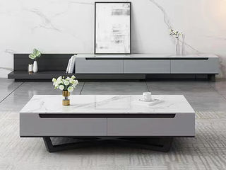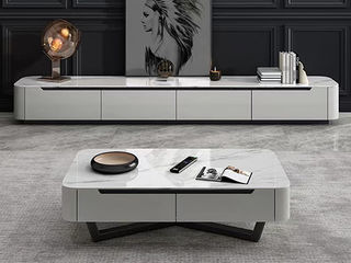 B系优选 现代简约 中纤板(MDF)烤漆+碳素钢脚架+岩板+实木松木抽屉 香奈儿 0.8米组合茶几