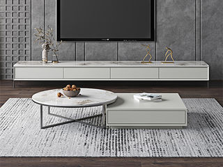 【套餐专享价】每屋优享系列 现代简约 柜体:高光玉灰色 岩板+托底缓冲导轨 PVC环保覆膜工艺 香奈儿 (不含边柜)2米电视柜(未开电源孔)