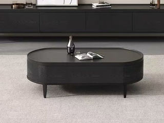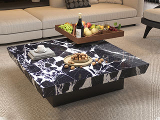 轻奢 碳素钢骑士黑+威尼斯棕人造石 1.2米茶几