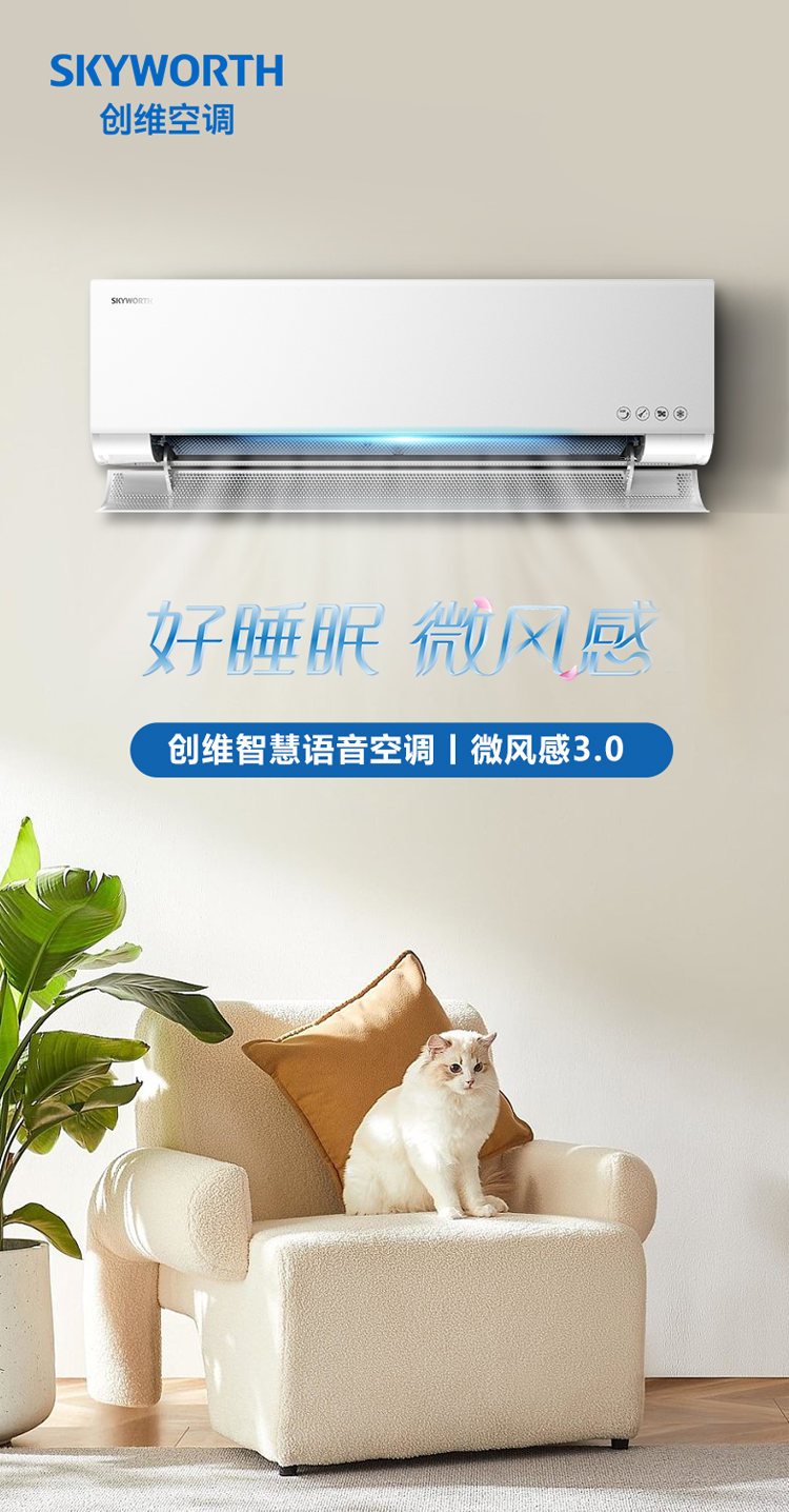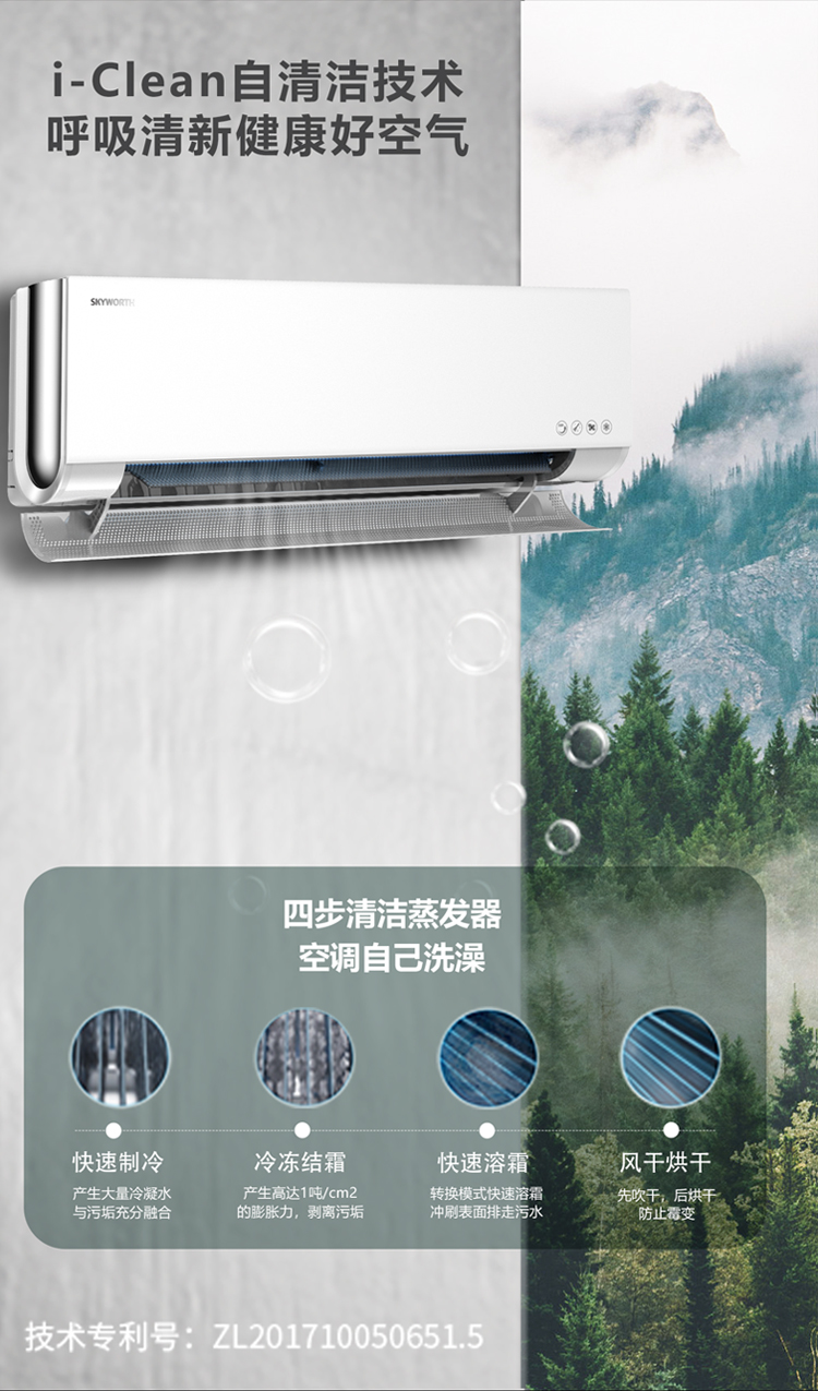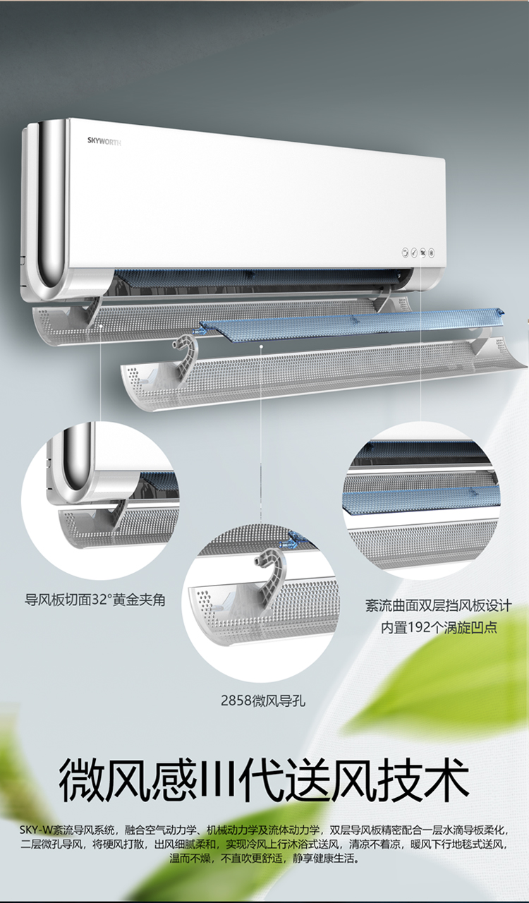 创维 微风感3.0 变频 除菌 1.5匹 白色 壁挂式 空调