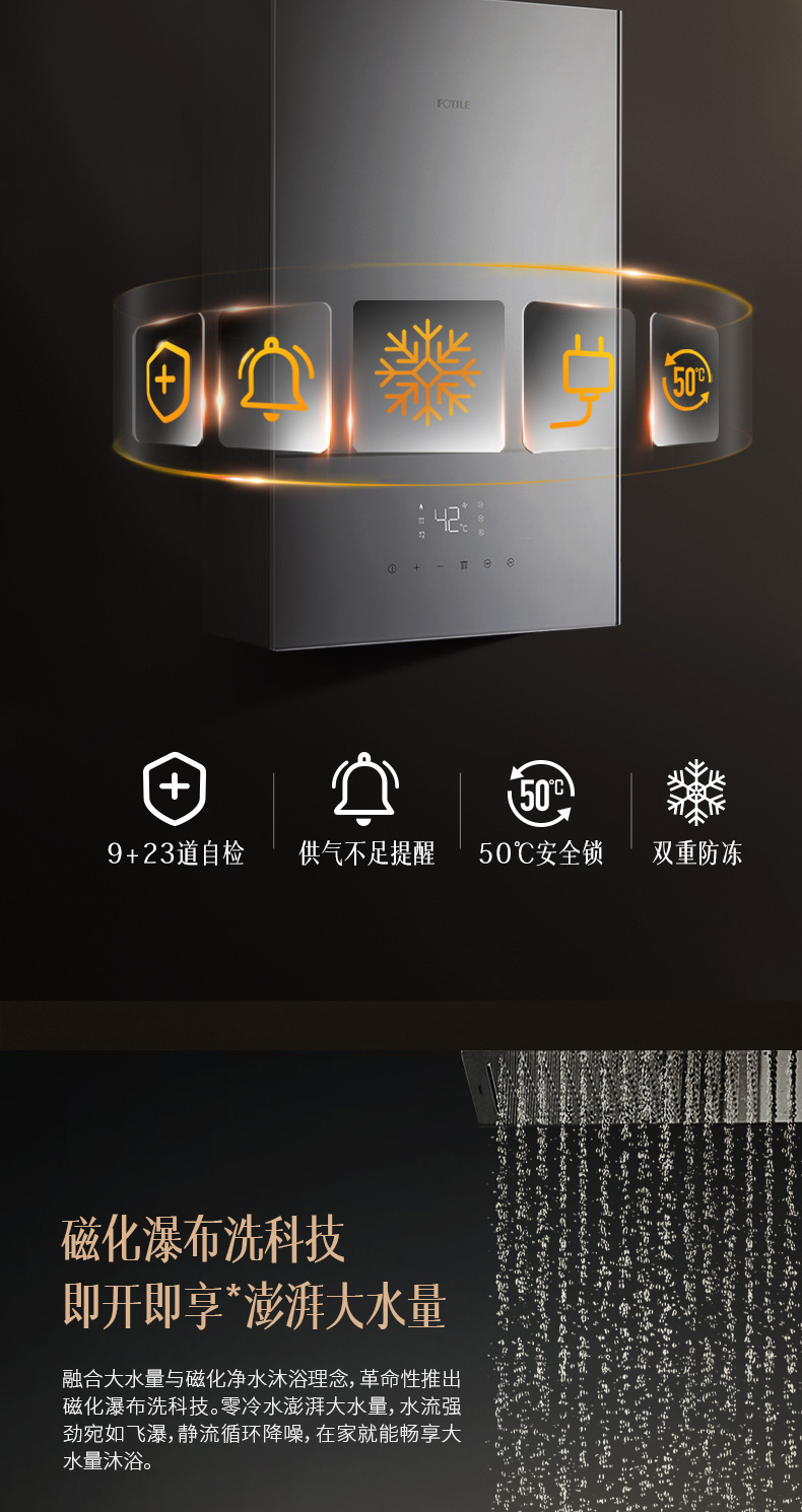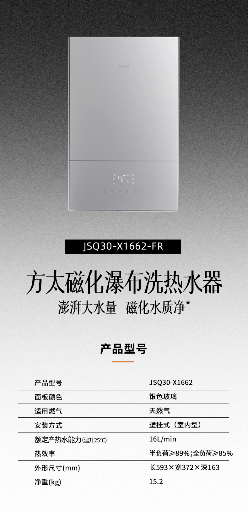 方太 双核磁化净水技术 2级能效 银色玻璃 零冷水 天然气热水器