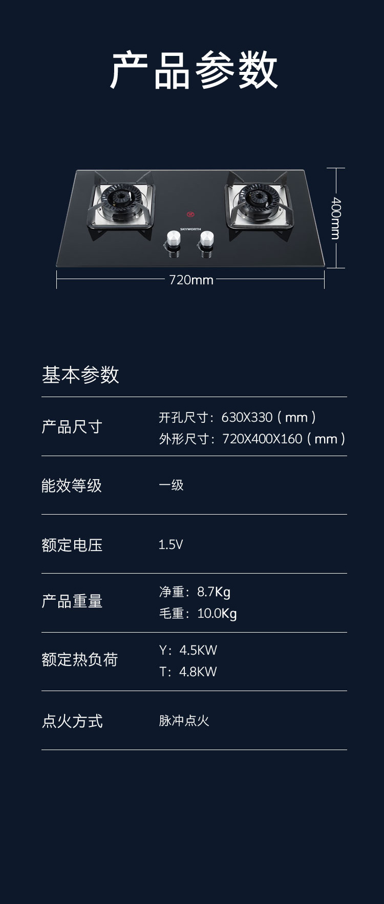创维 钢化玻璃 脉冲点火 双灶