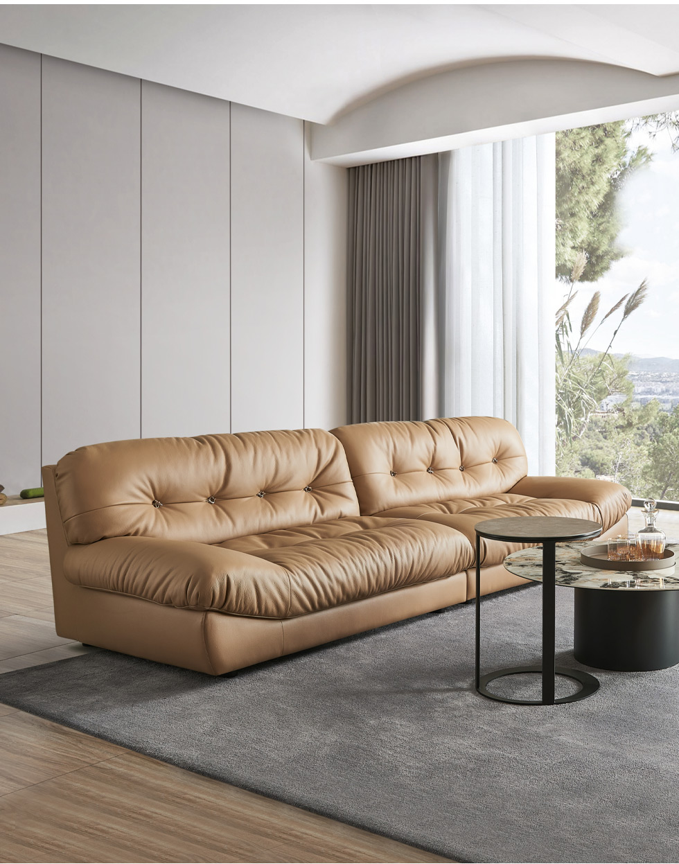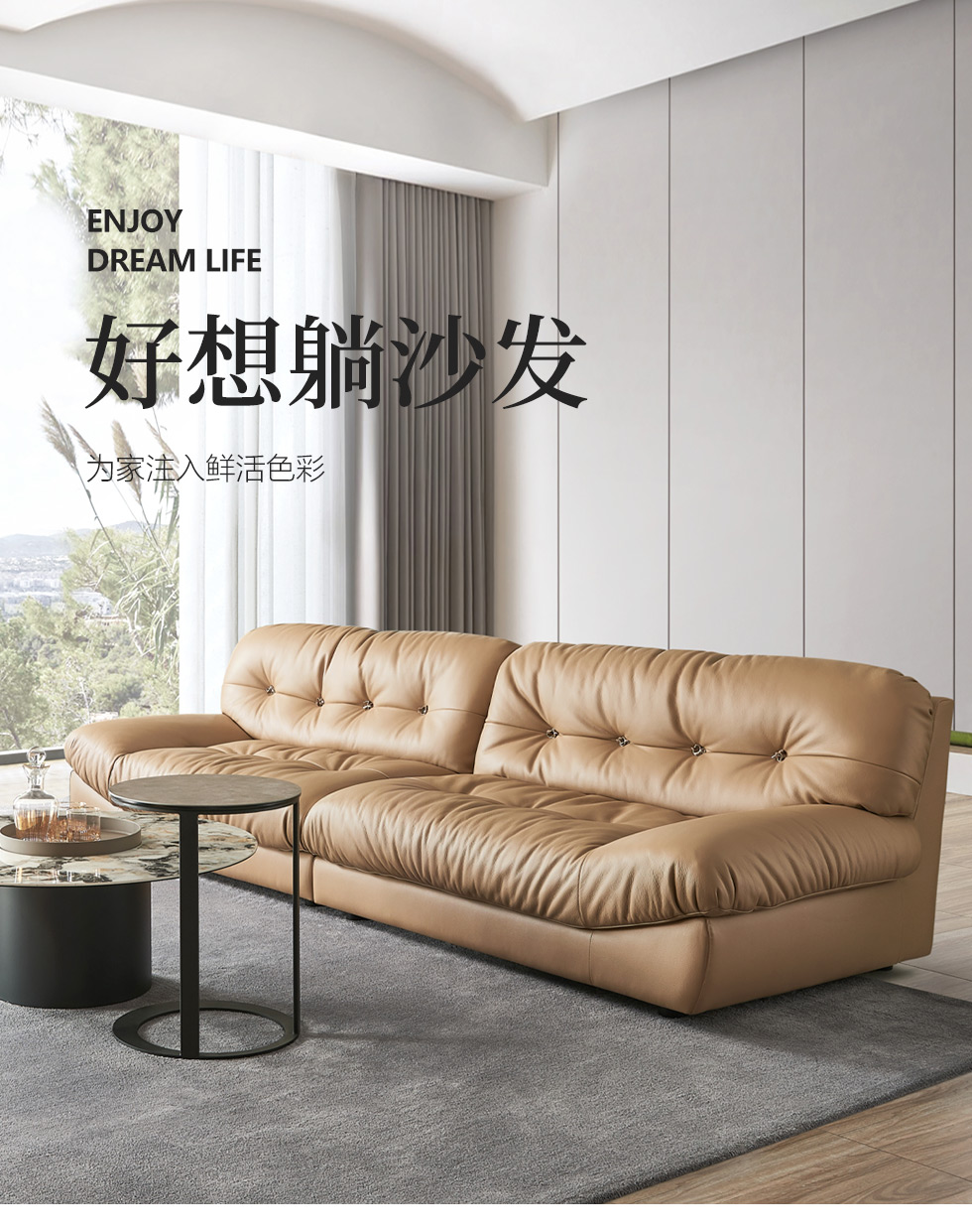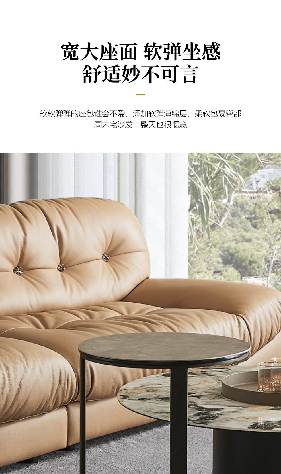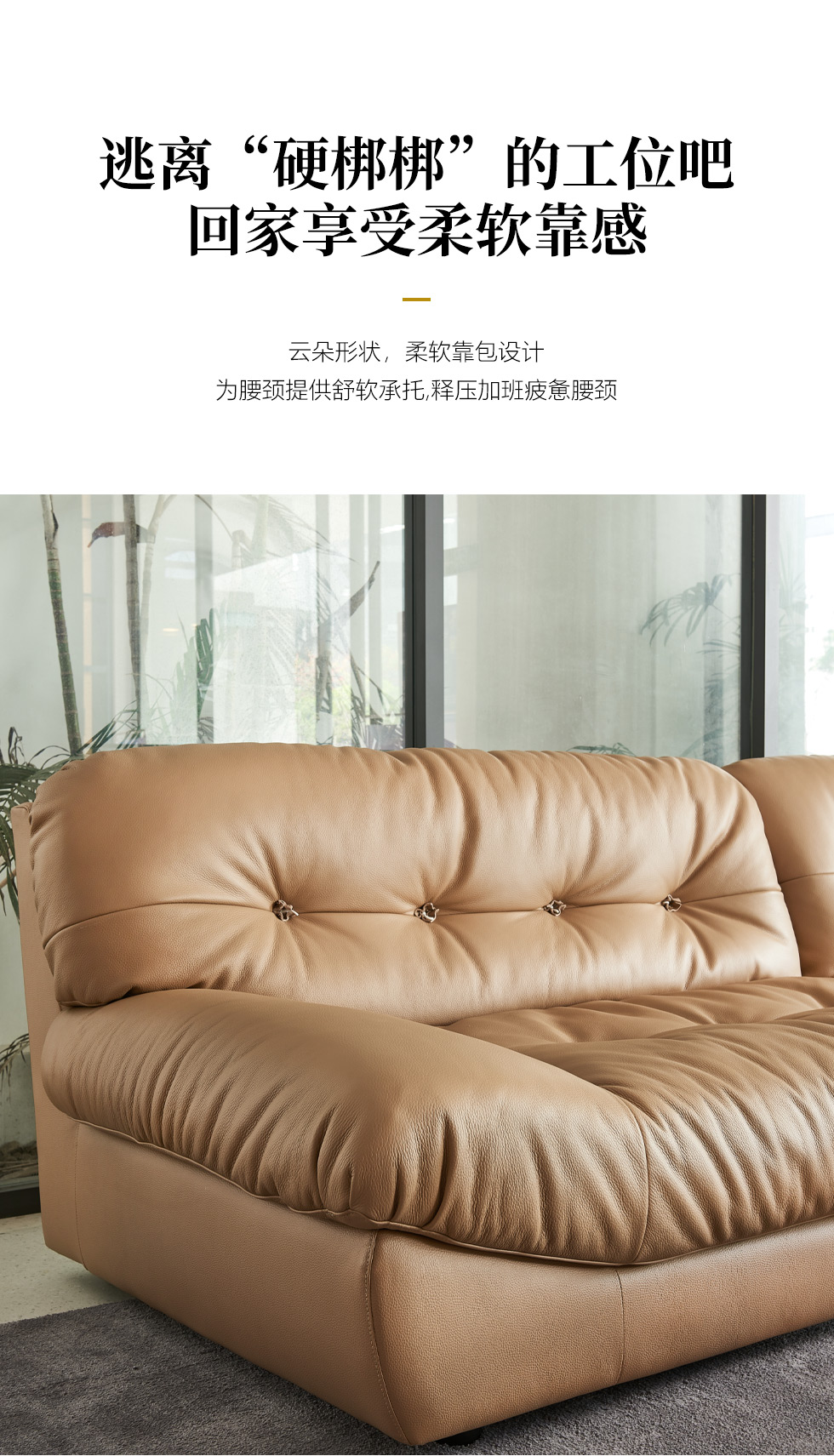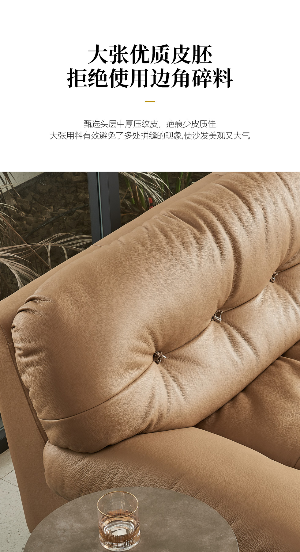 缔造 极简 接触面进口意大利头层真皮+羽绒+高密度海棉+航空铝合金枪黑脚 皮艺转角3.24米沙发(右2+左贵)¥15560