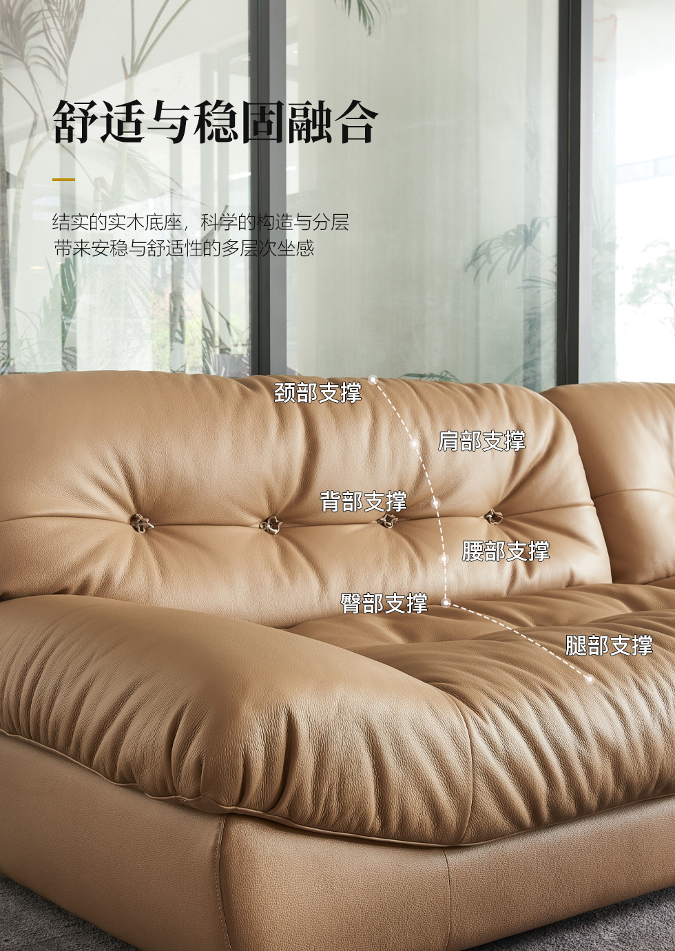 希奥 极简 海绵40-45密度+接触面羽绒真皮+中厚压纹皮+金属脚米黄色皮艺转角3.37米沙发(3人位+左贵妃)¥19217