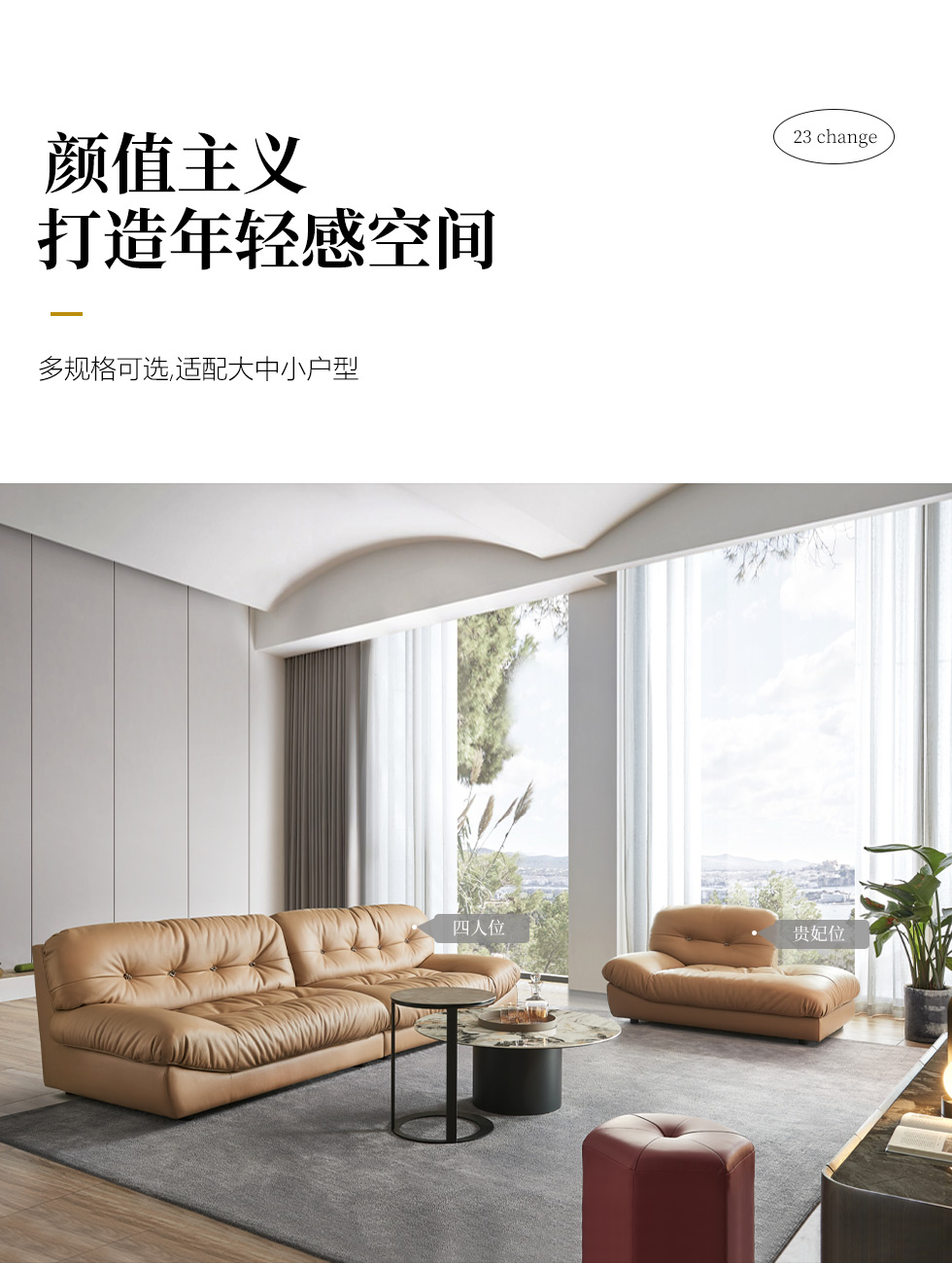 贝斯solo 设计师 网红 极简 接触面真皮 高回弹海绵填充靠背 右单+无单+左贵妃 鲸鱼尾3.25米沙发