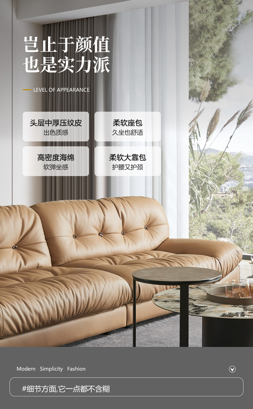 缔造 极简 接触面头层磨砂真皮+高密度海棉+羽绒+碳素钢脚 皮艺转角3米沙发 (右2+左贵)¥16976
