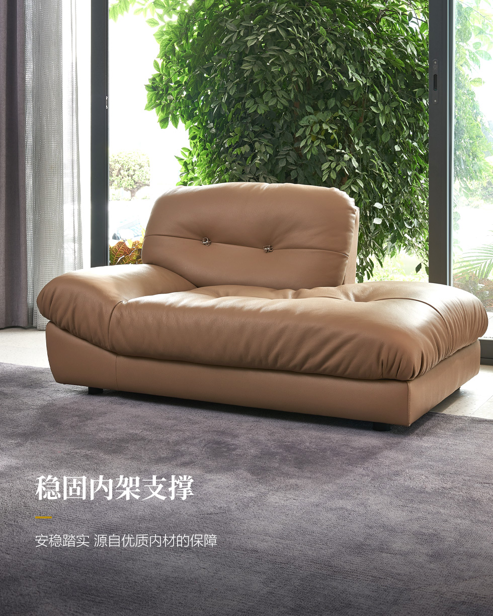 皇朝家居 现代极简 接触面轻压摔头层黄牛皮+桉木足方+E1双面杨木夹板+高回弹海绵+4.0 蛇形拱簧+白鹅绒+公仔棉+五金脚 1+3+左贵妃 3.83米沙发¥25744