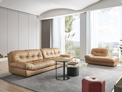 梵纳意简 极简 接触面头层牛皮+仿皮+多层实木板+实木内架+高回弹海绵+实木5分脚米黄色 1+左贵妃+3 3.45米沙发¥36043