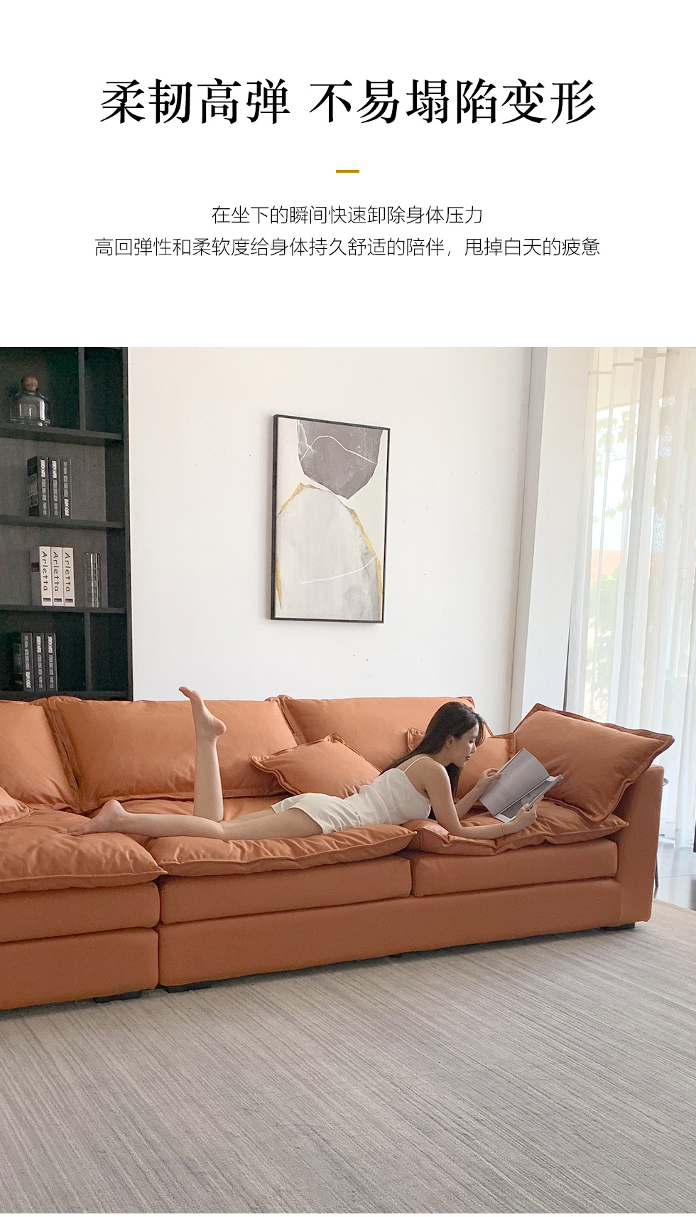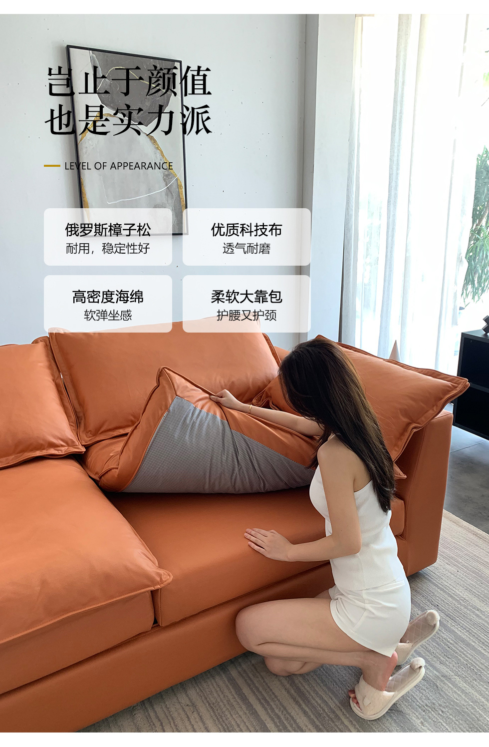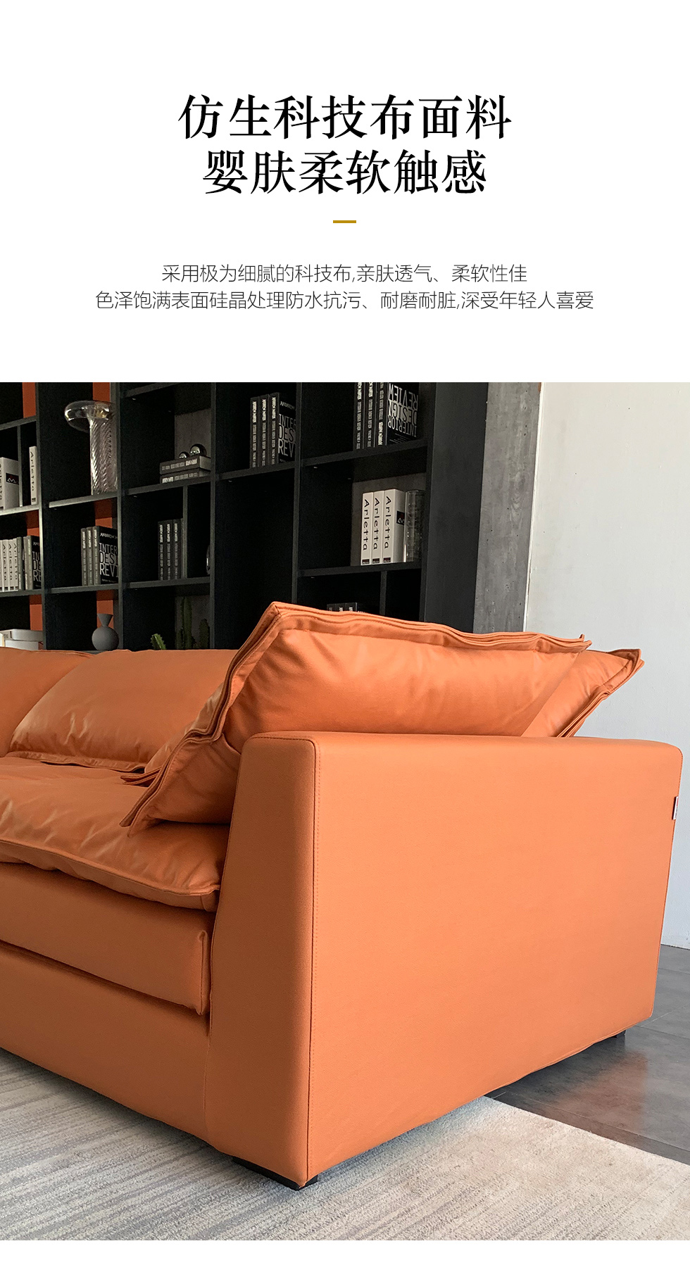 非凡工艺 现代简约 组合沙发 科技布+东亚大豆纤维海绵+俄罗斯樟子松+碳素钢五金脚 橙色
