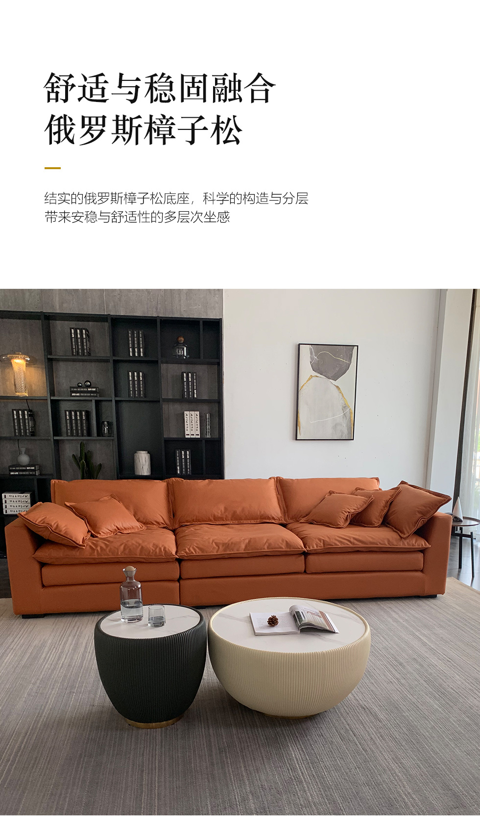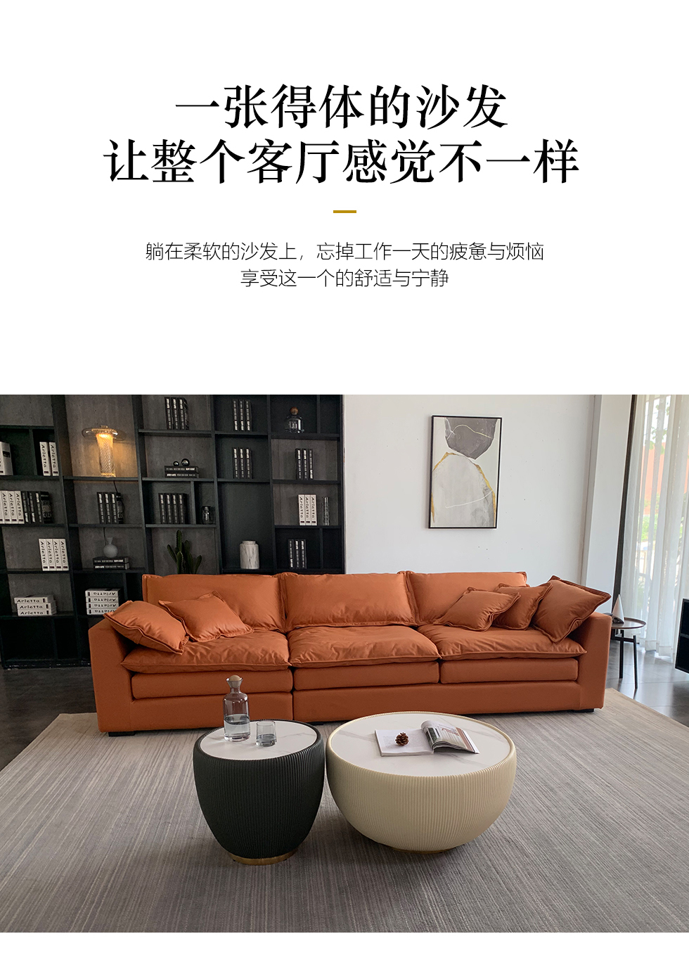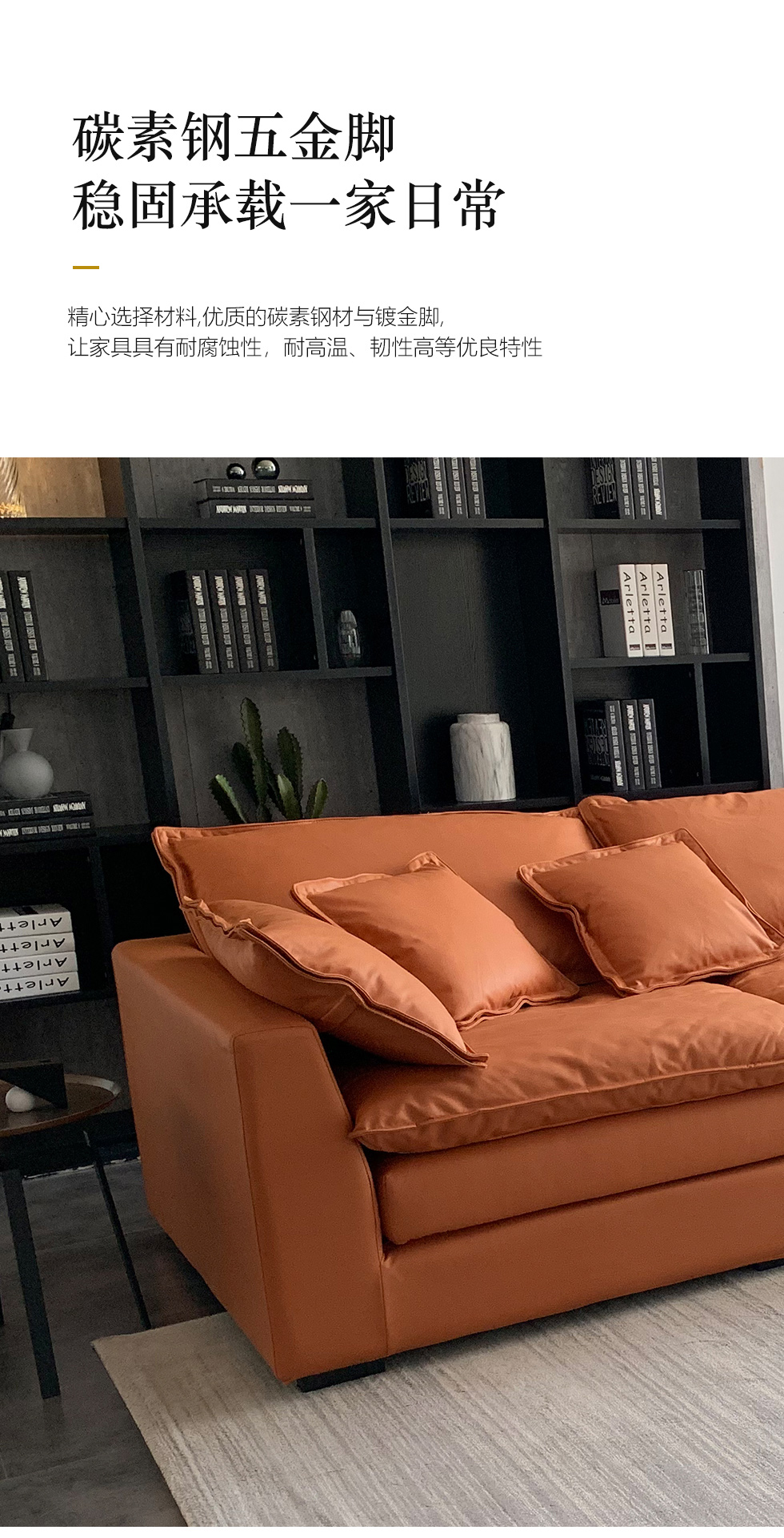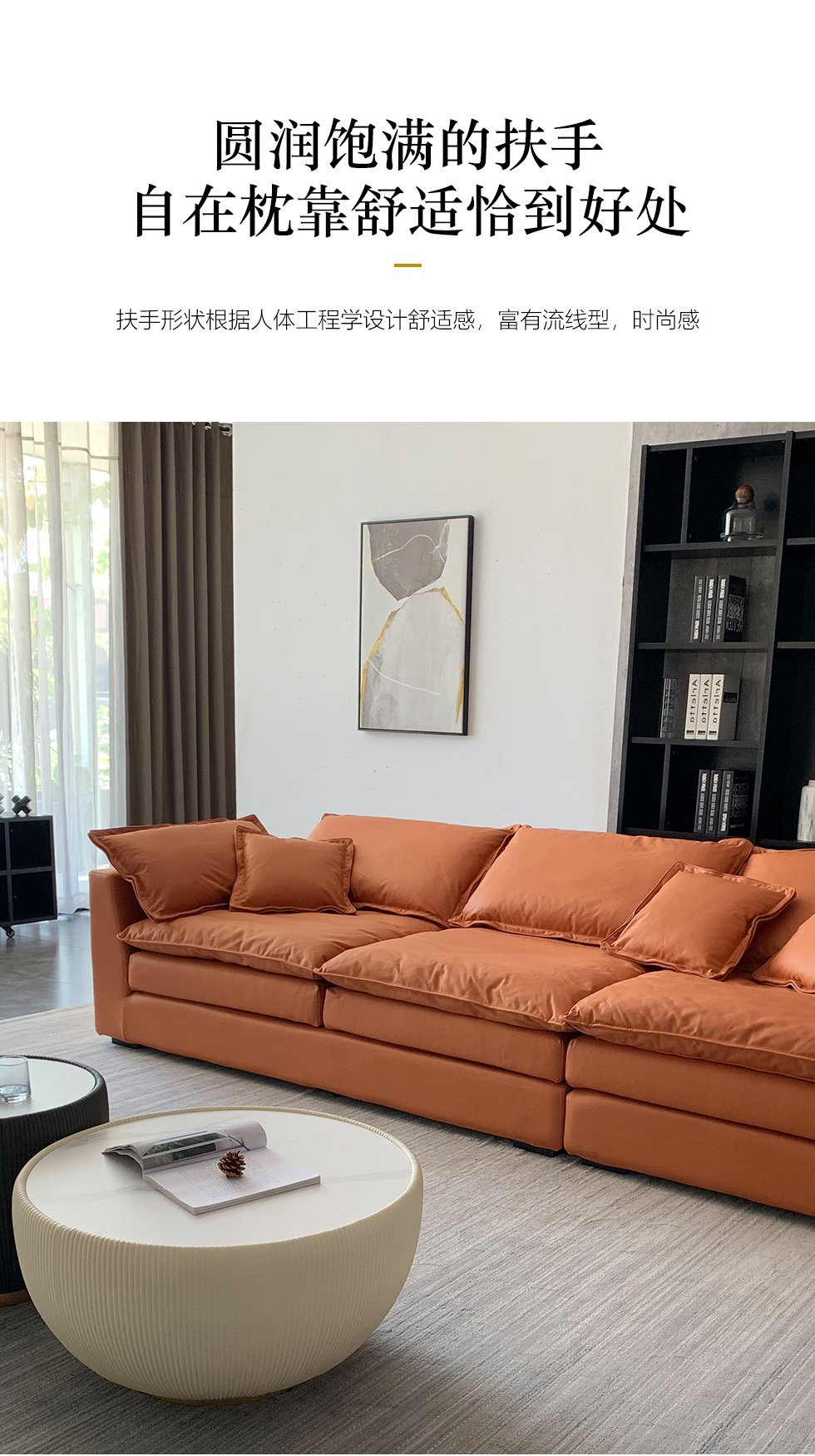 非凡工艺 现代简约 组合沙发 科技布+东亚大豆纤维海绵+俄罗斯樟子松+碳素钢五金脚 橙色