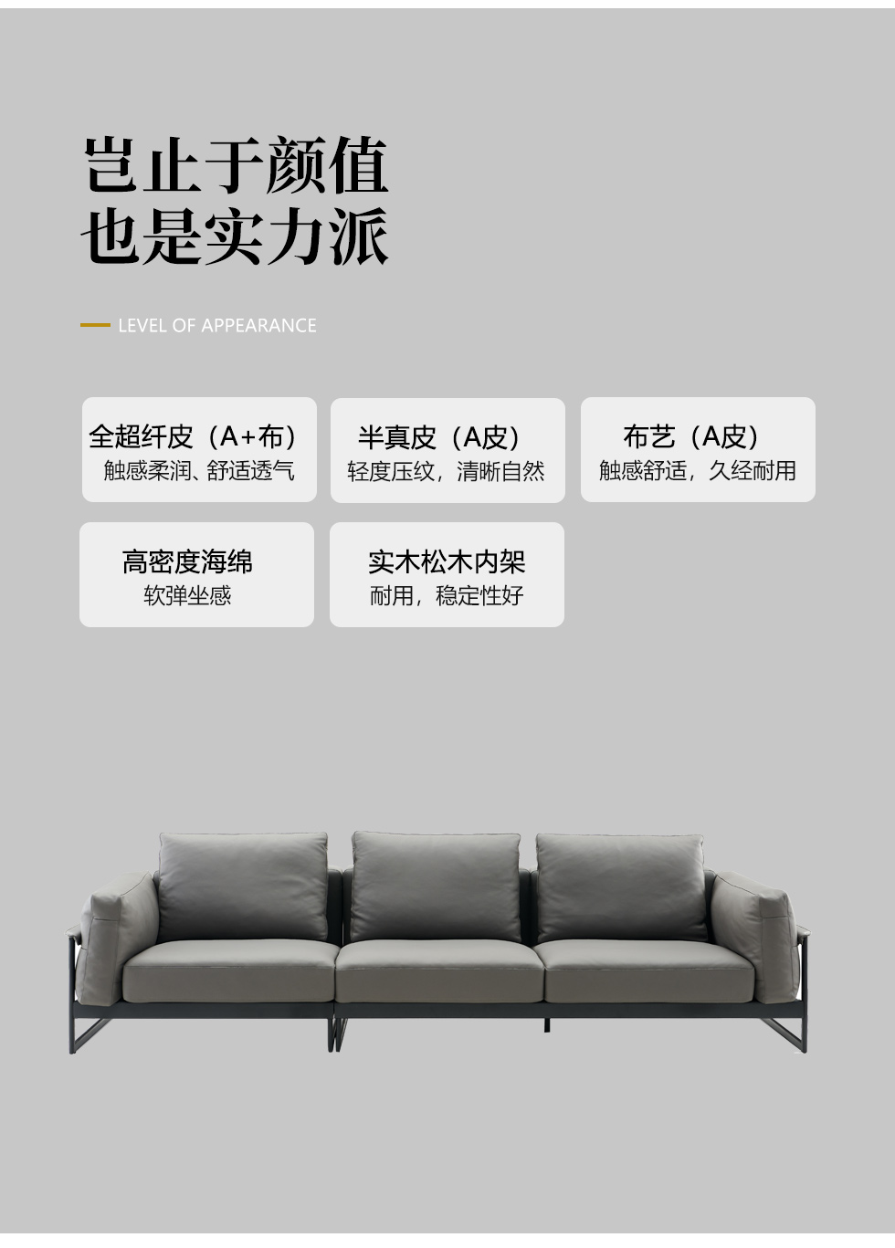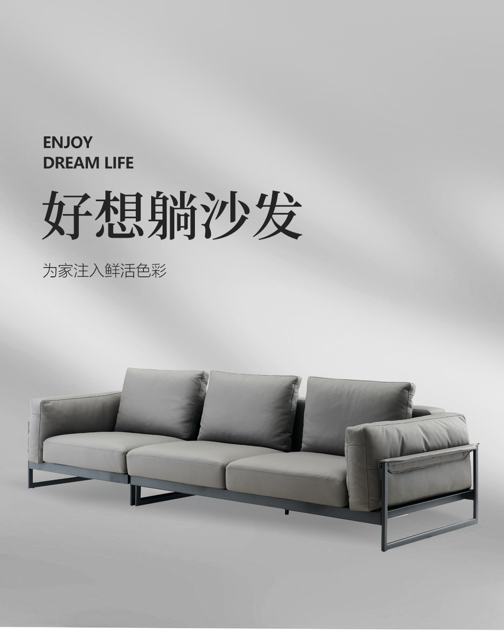希奥 极简 进口磨砂皮 俄罗斯樟子松 组合沙发 皮沙发