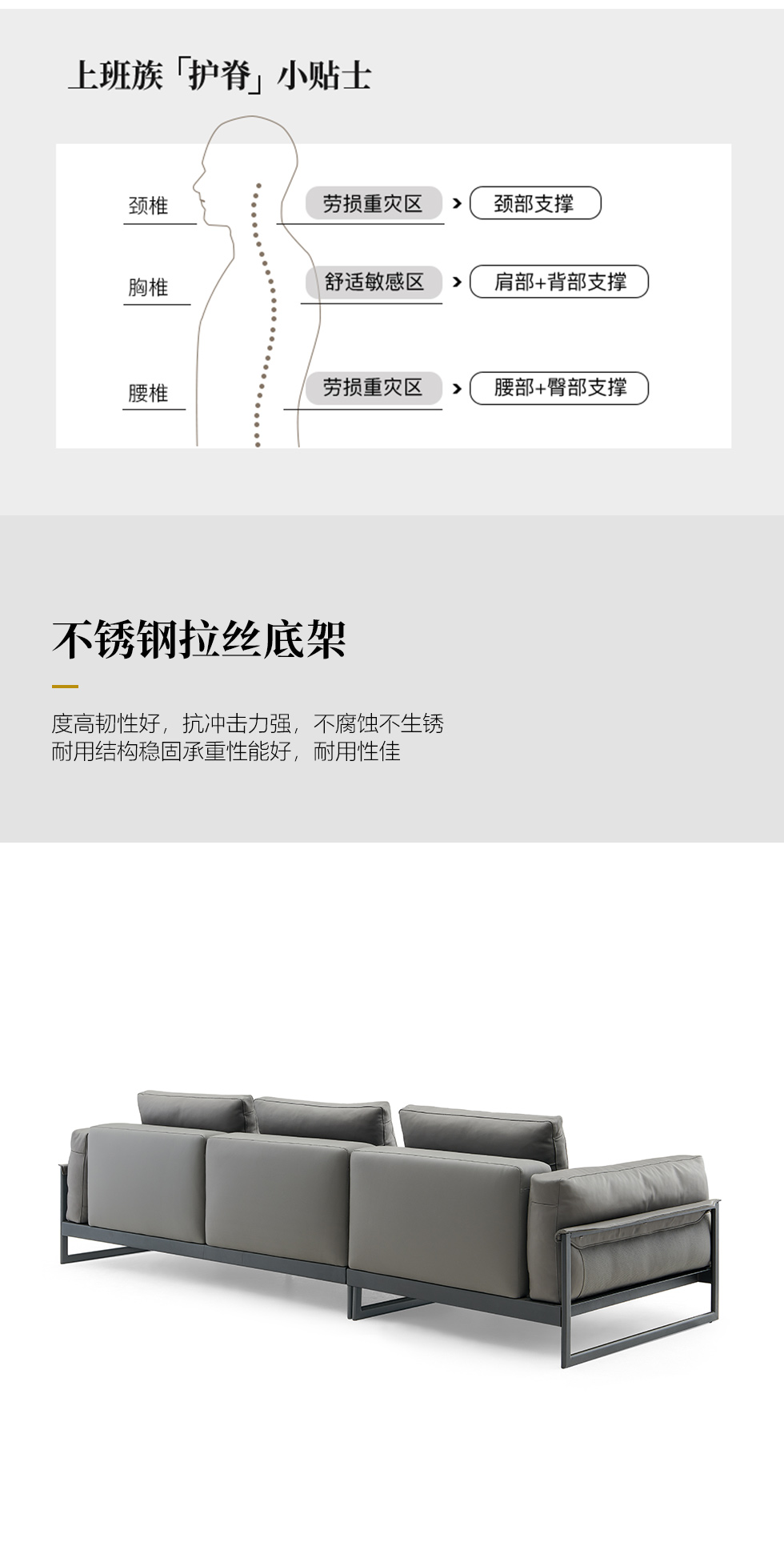 Milos米洛斯 极简 全真皮(A皮)高回弹海绵+羽绒+实木松木内架+不锈钢拉丝底架 皮艺4.7米沙发 (单扶三+单扶三+无扶三+脚踏A)