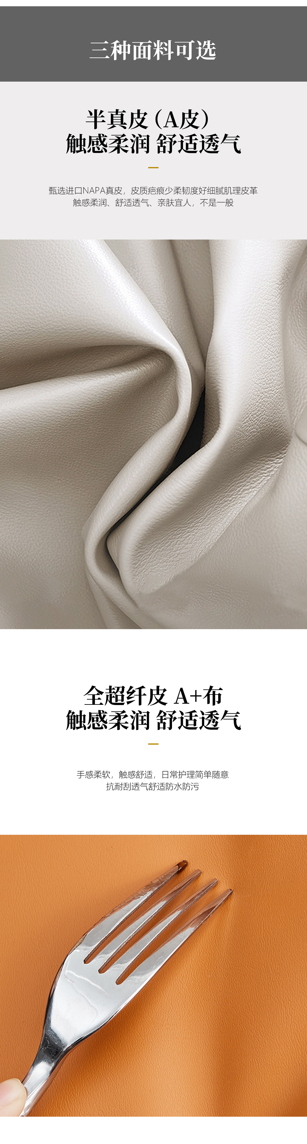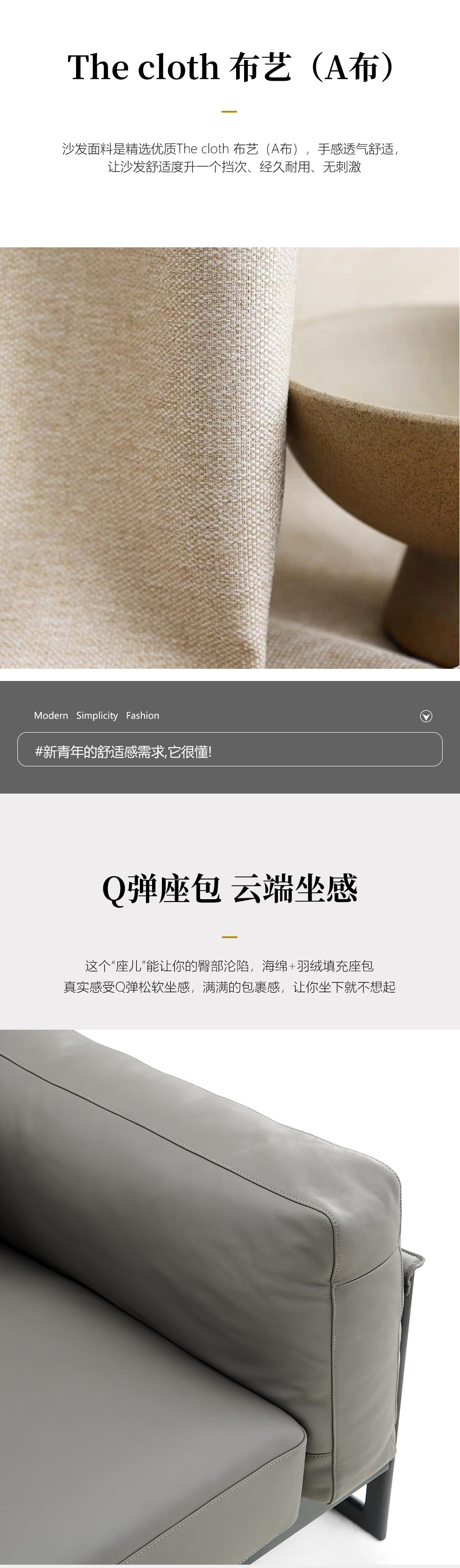 CBD家居 极简 优质纳纤皮+东亚海绵+云杉木实木主框架 主色HE07浅绛色辅色HE02蜡白 单人位+三人位+脚踏 2.2米沙发¥44226