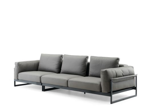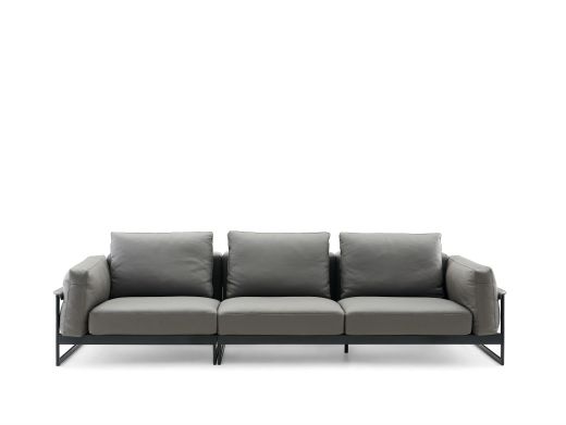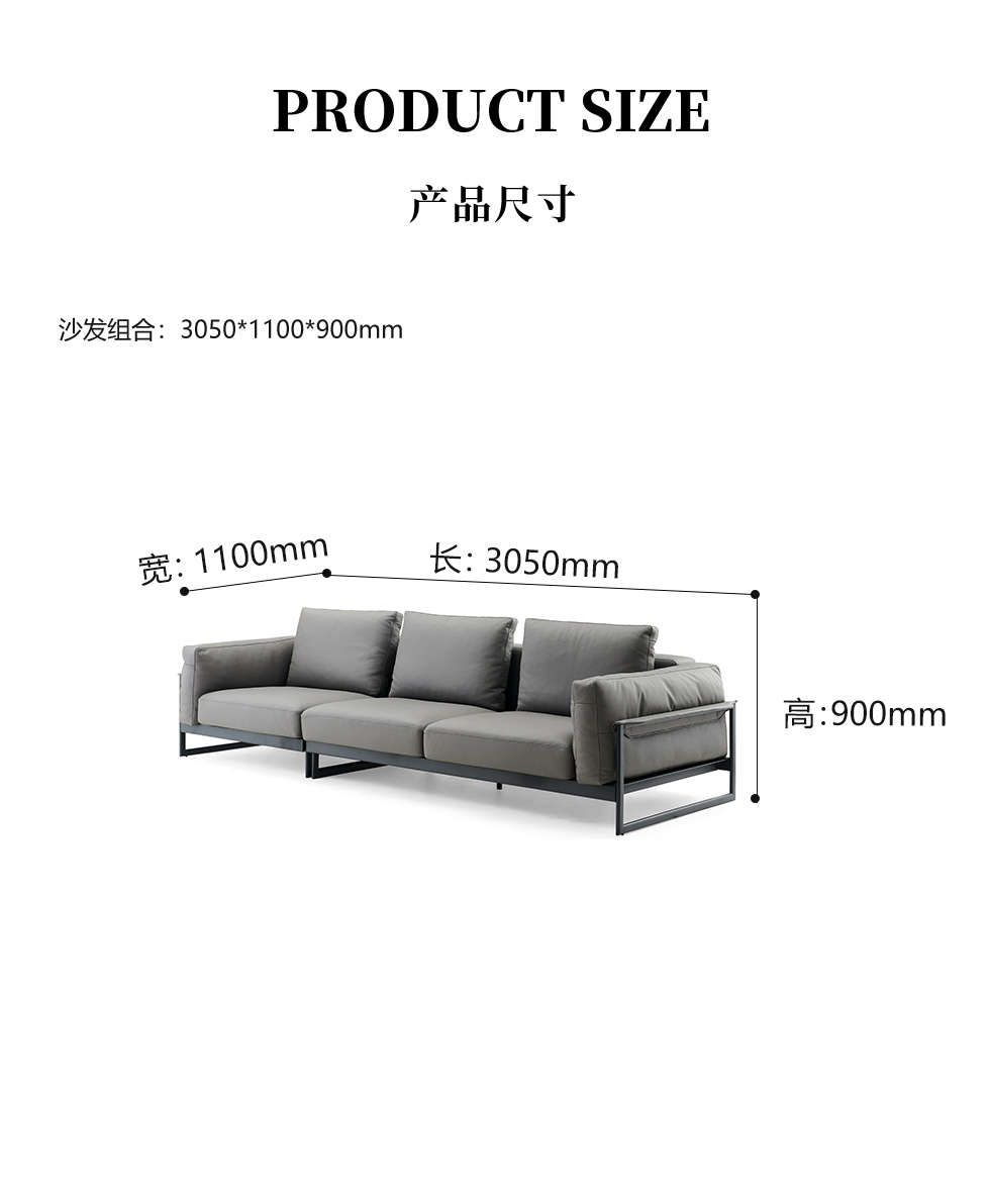 Milos米洛斯 极简 半真皮(A皮)+高回弹海绵+羽绒+实木松木内架+碳素钢金属烤漆框架 皮艺3.05米沙发 (单扶三+单扶单)