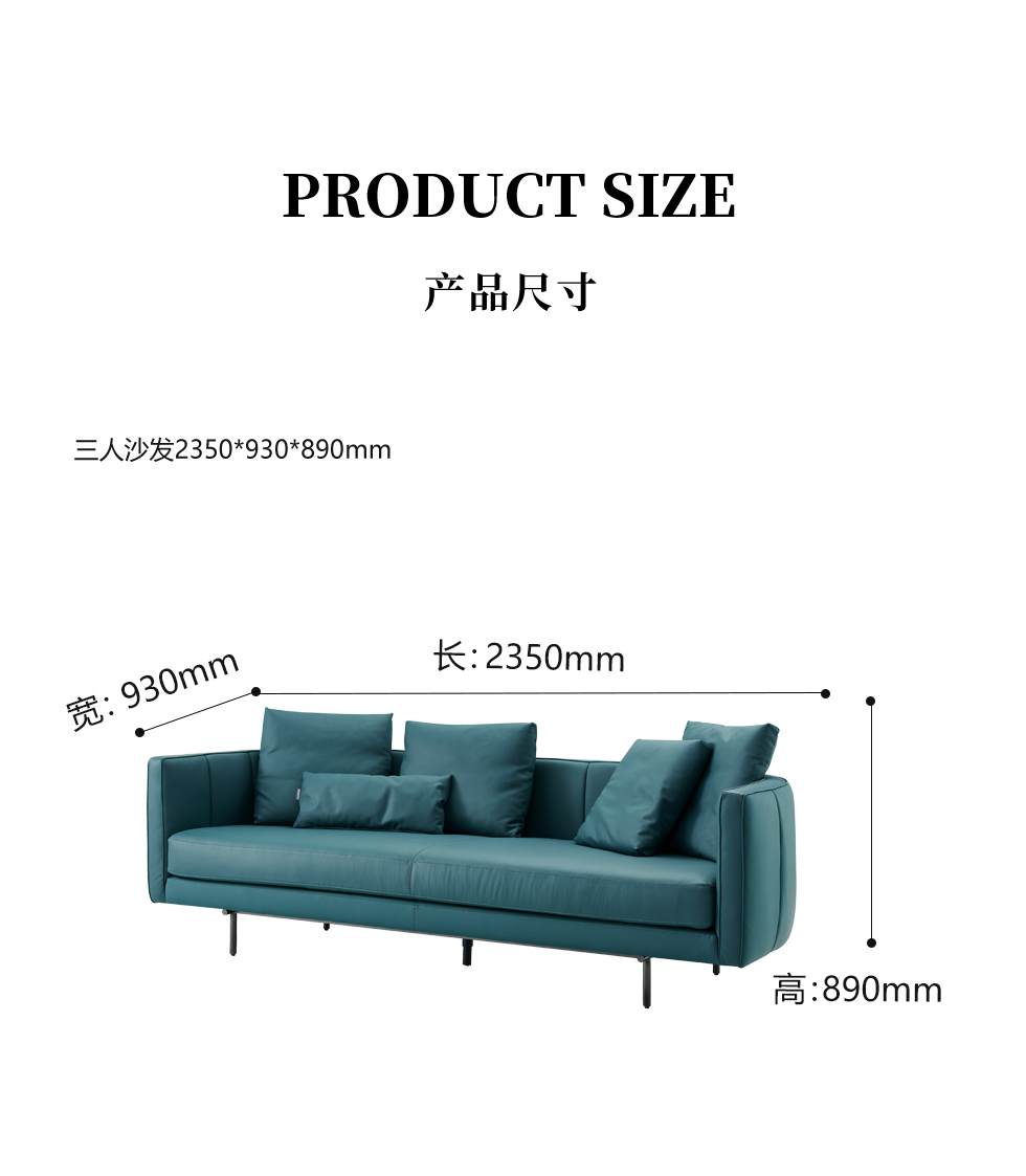 希奥 极简 纳帕平纹皮+40-45密度+五金脚墨绿色 二人位+四人位 组合皮艺沙发¥27962
