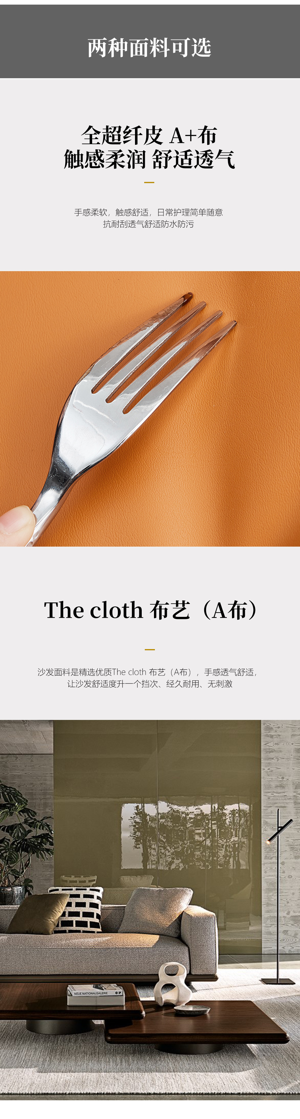 Milos米洛斯 极简 全超纤皮(A+布)+高回弹海绵+羽绒+实木松木内架+不锈钢拉丝底架 皮艺转角 钢琴键网红 4.31米沙发(单扶三*2+活动扶手+无扶单+右贵妃)