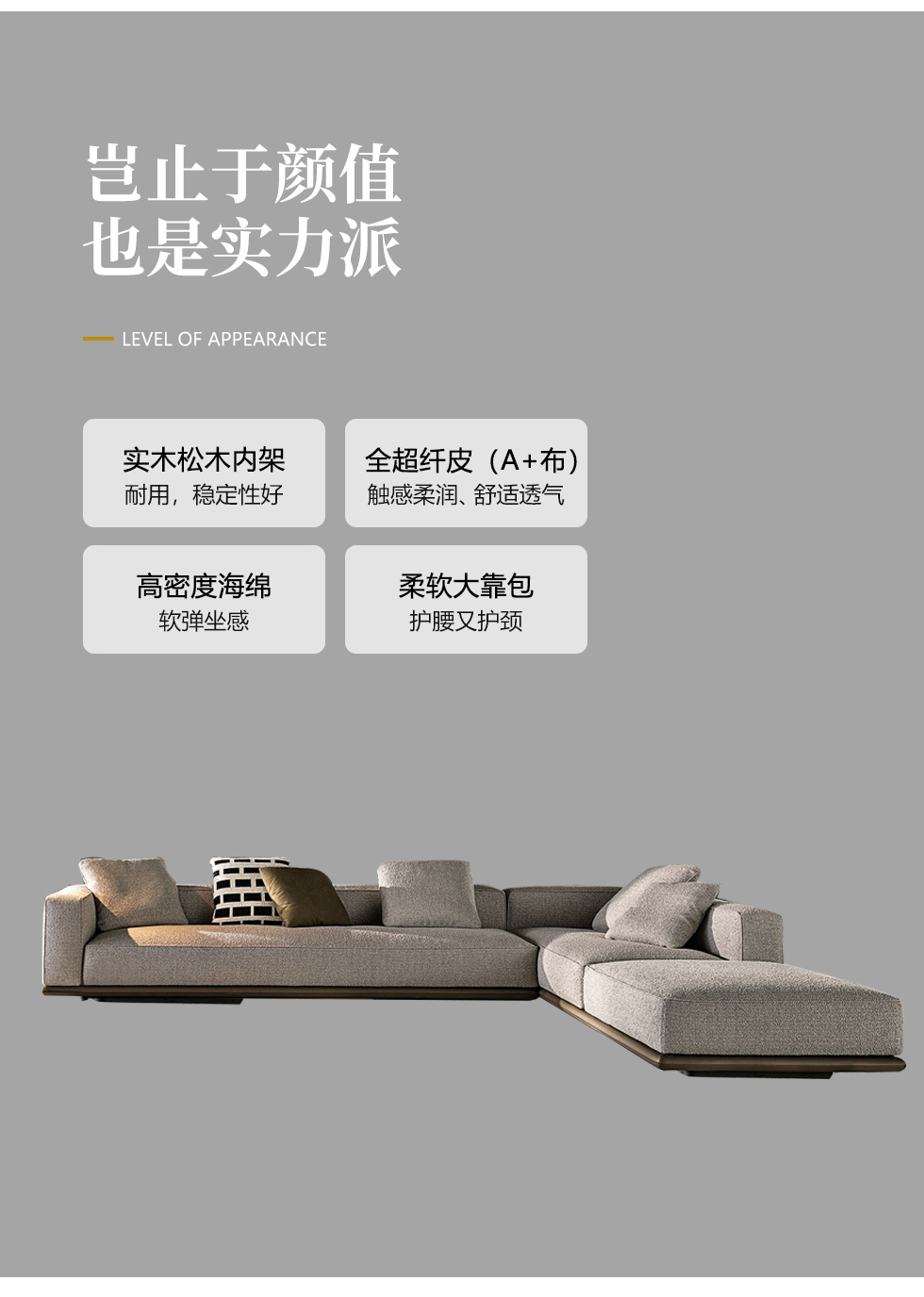 希奥 极简 进口磨砂皮 俄罗斯樟子松 3+左贵妃 网红地平线 皮转角3.65米沙发Milos米洛斯 极简 半真皮(A皮)+高回弹海绵+羽绒+实木松木内架+碳素钢金属烤漆框架 皮艺3.05米沙发 (单扶三+单扶单)