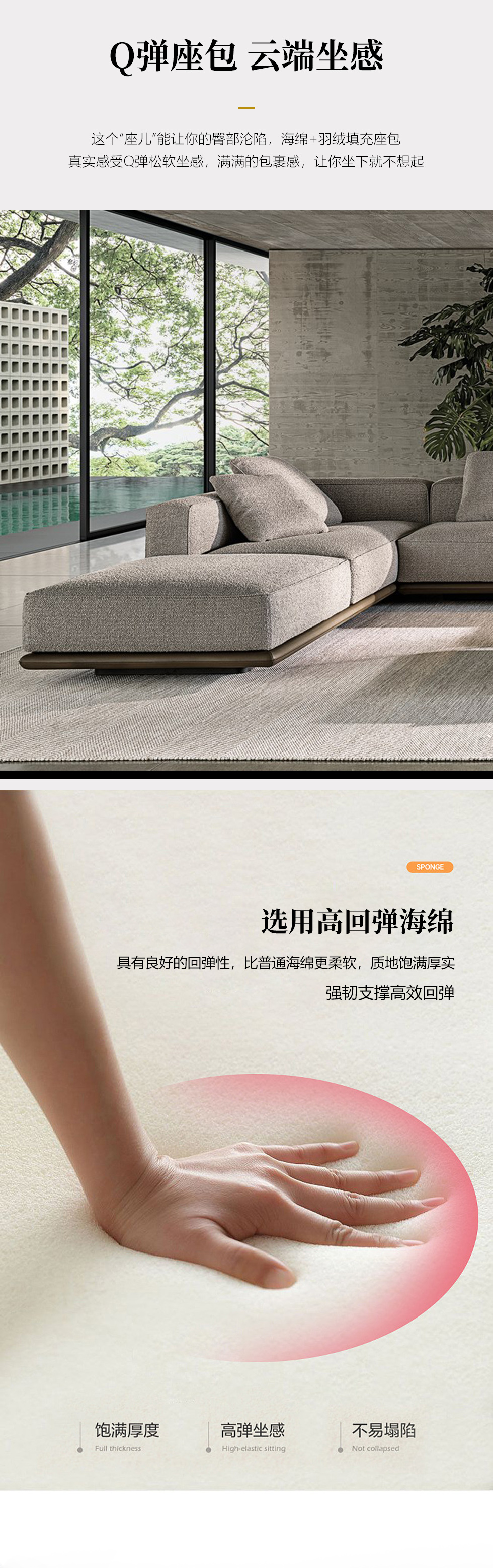 Milos米洛斯 极简 半真皮(A皮)+高回弹海绵+羽绒+实木松木内架+不锈钢拉丝脚 皮艺转角3.7米沙发 (3+左贵)¥86047