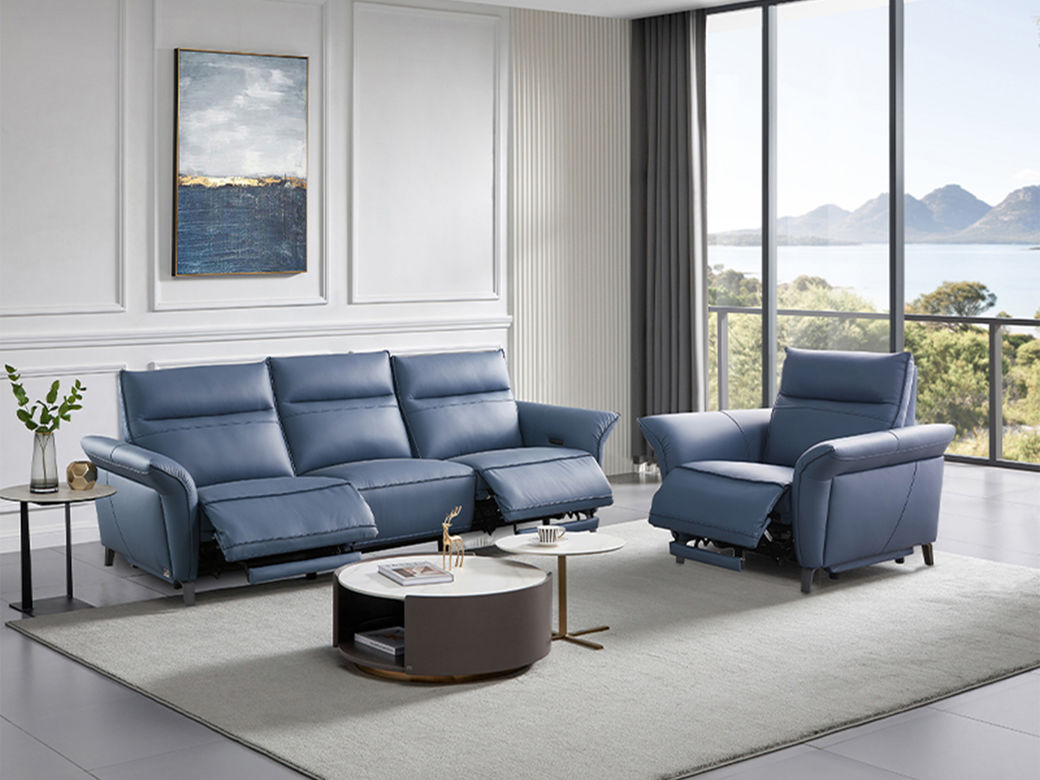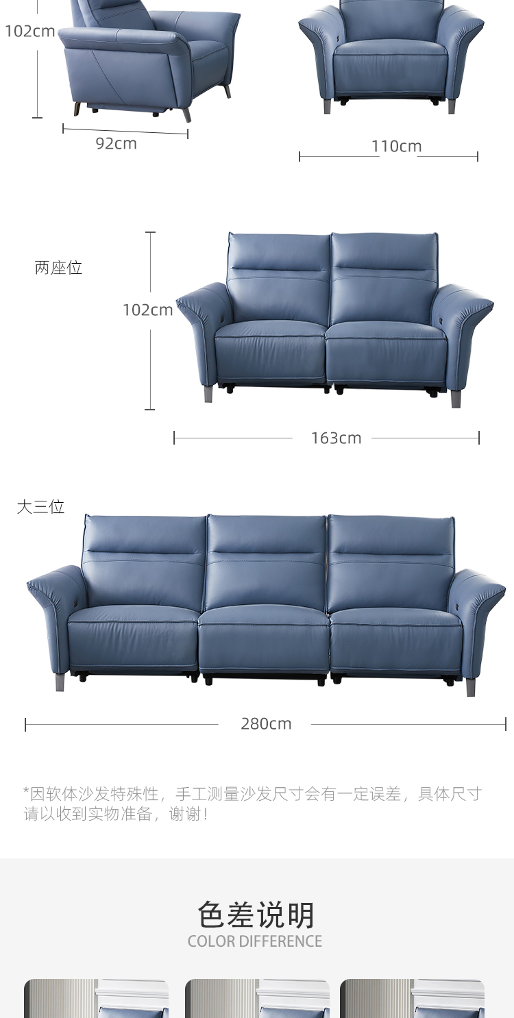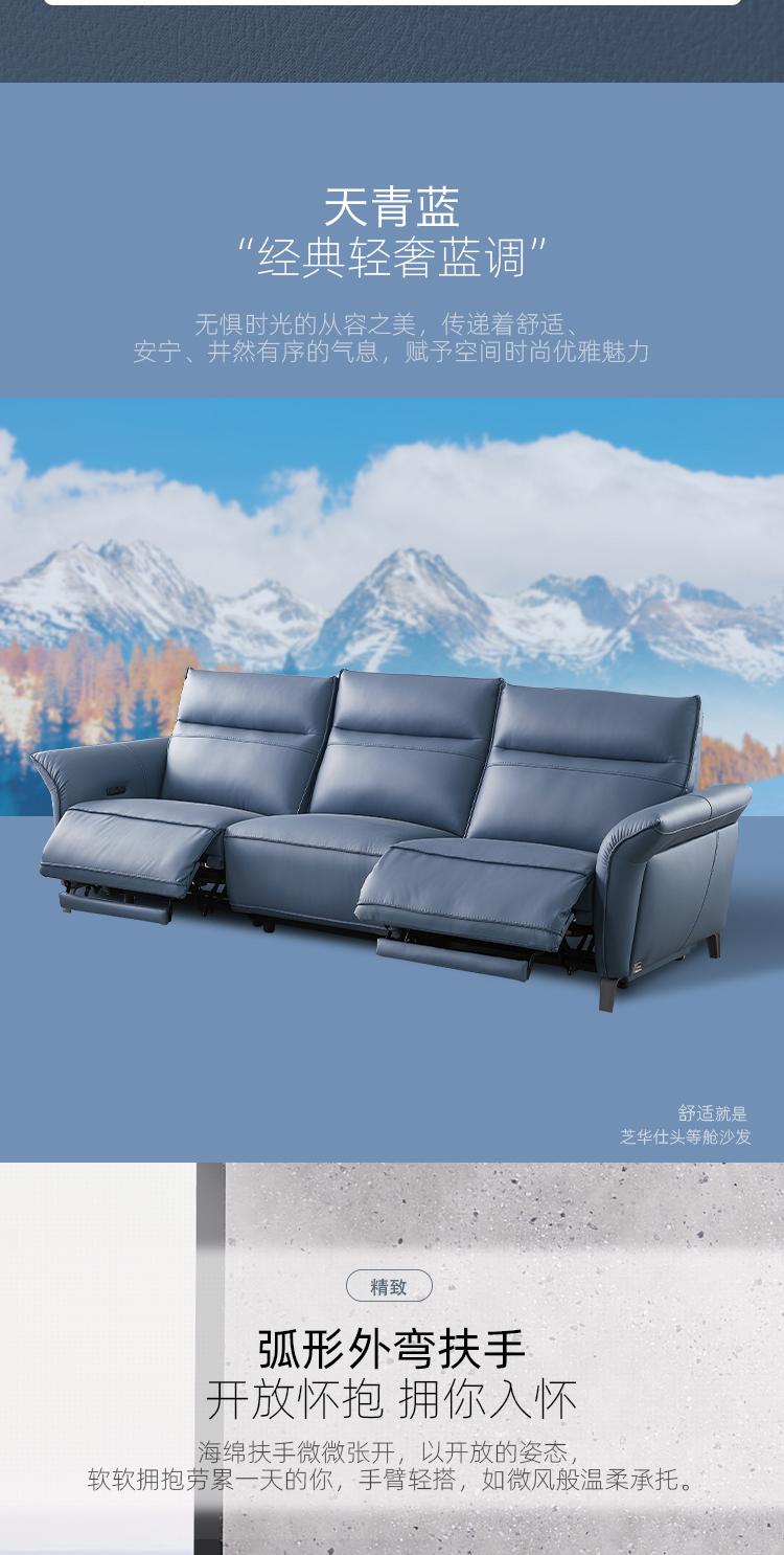 芝华仕 现代简约 零靠墙 接触面进口头层奶牛皮+PVC+合金钢架+进口实木+多层实木板+L型实木脚+太空绵+高回弹海绵 三人位【双电机】皮艺功能2.72米沙发¥31145