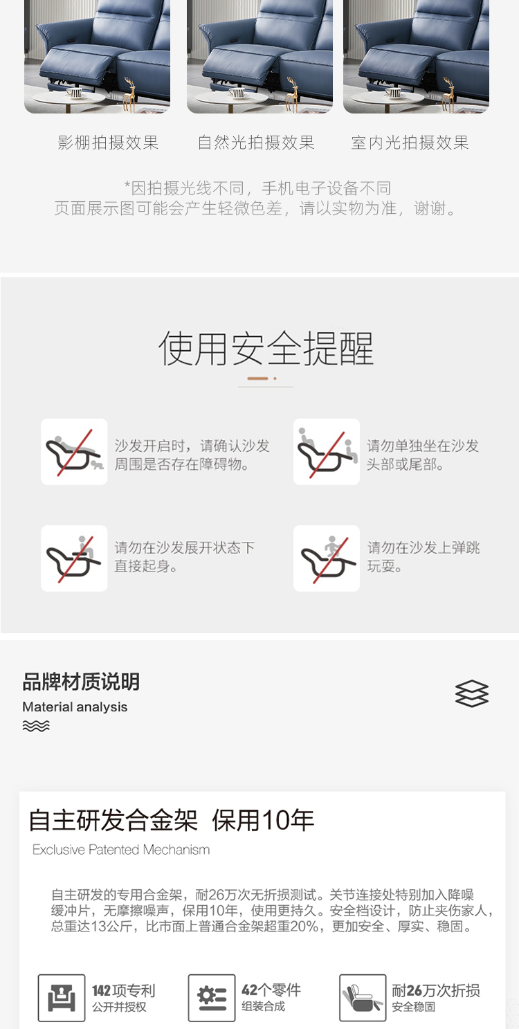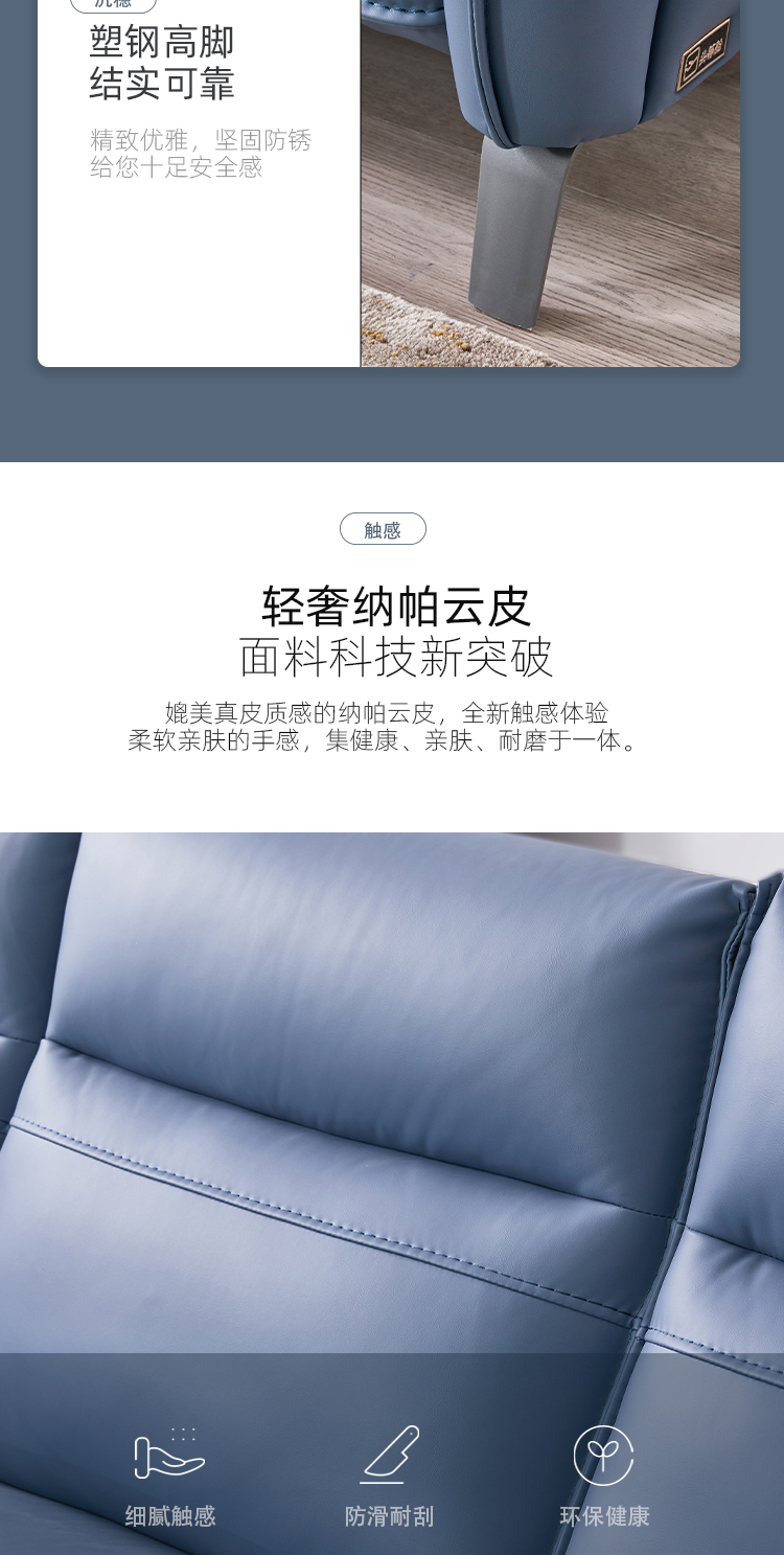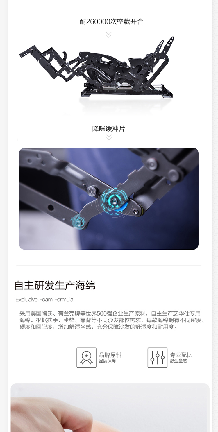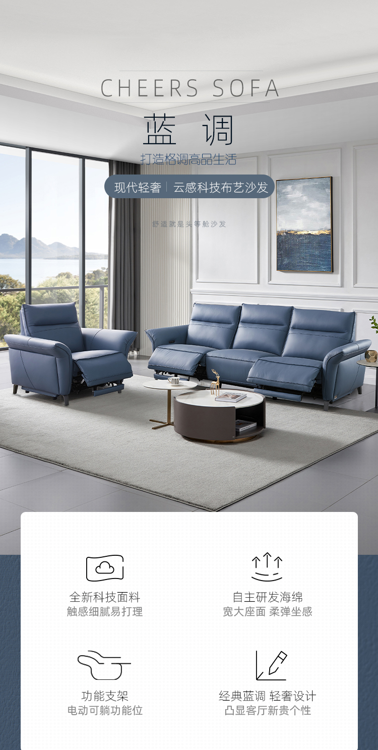 芝华仕 现代简约 科技布 合金钢架+进口实木+夹板 合金刚架脚+塑胶防刮胶套 (单人位【电动】+三人位【双电机】)组合功能布艺沙发 |