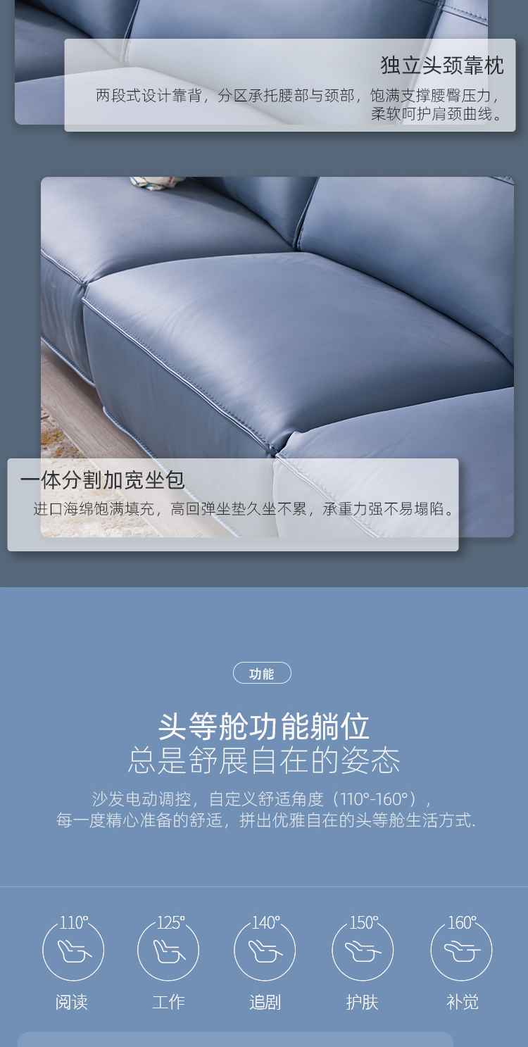 芝华仕 现代简约 接触面进口头层奶牛皮+PVC+合金钢架+进口实木+多层实木板+合金刚架脚+塑胶防刮胶套+太空绵+高回弹海绵 三人位【双电机】功能皮艺2.6米沙发