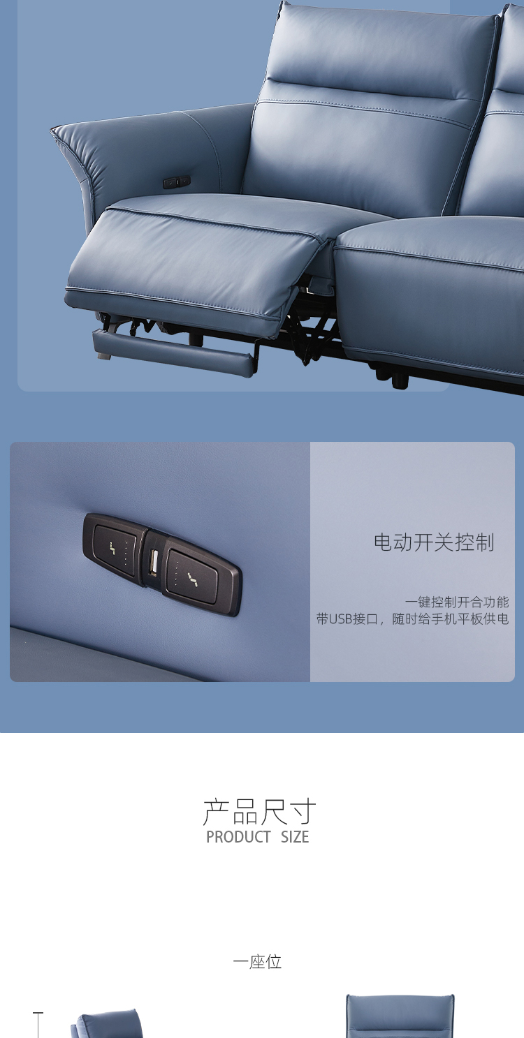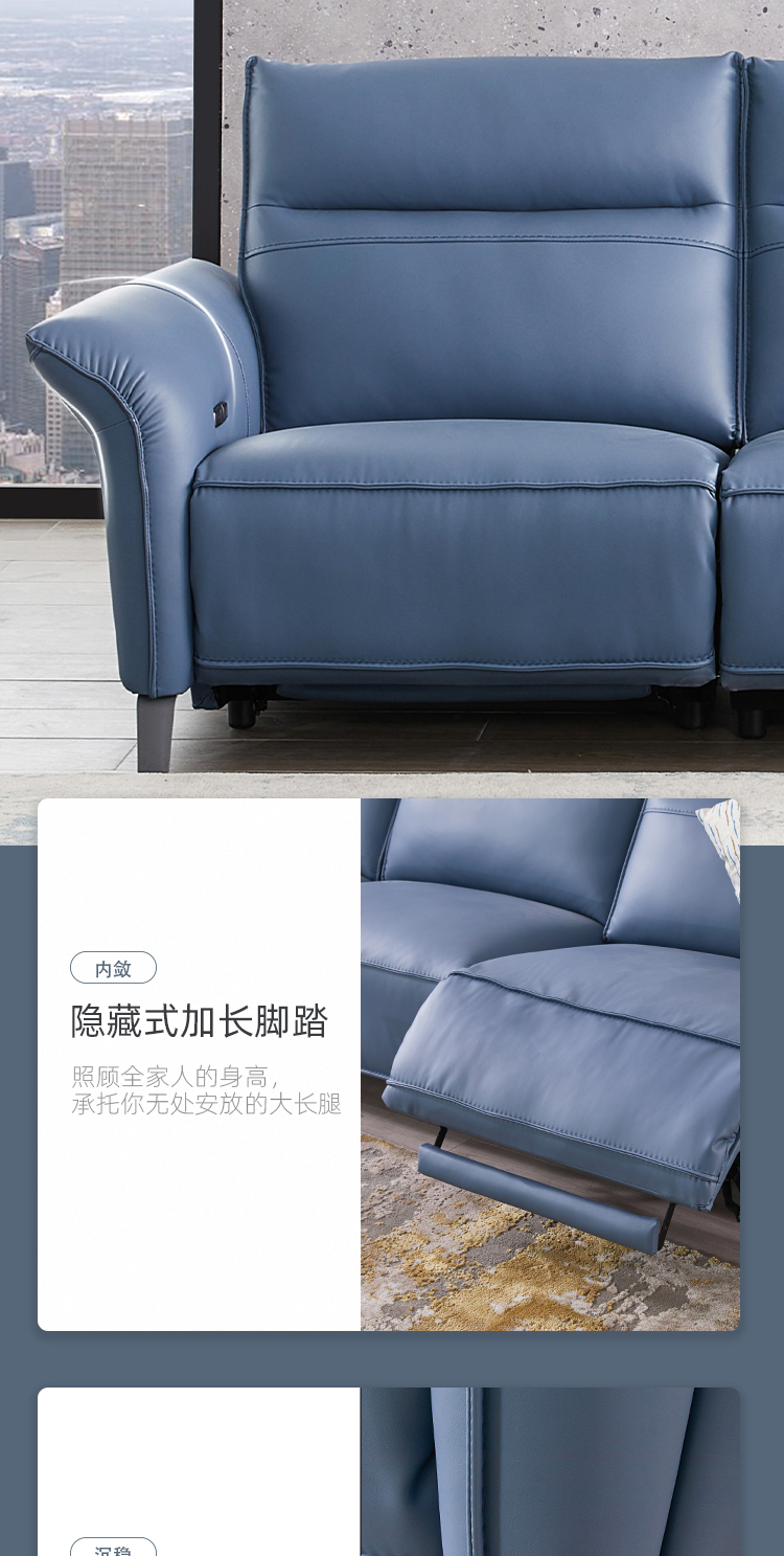 芝华仕 现代简约 接触面进口头层奶牛皮+科技布+合金钢架+进口实木+多层实木板+合金脚+太空绵+高回弹海绵 三人位【双电机】皮艺2.52米沙发¥15804