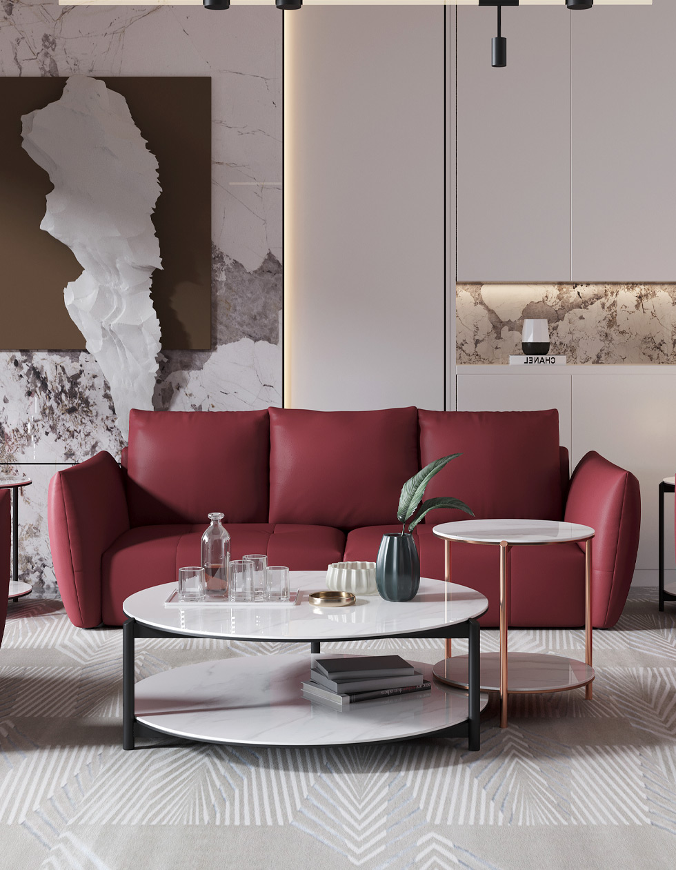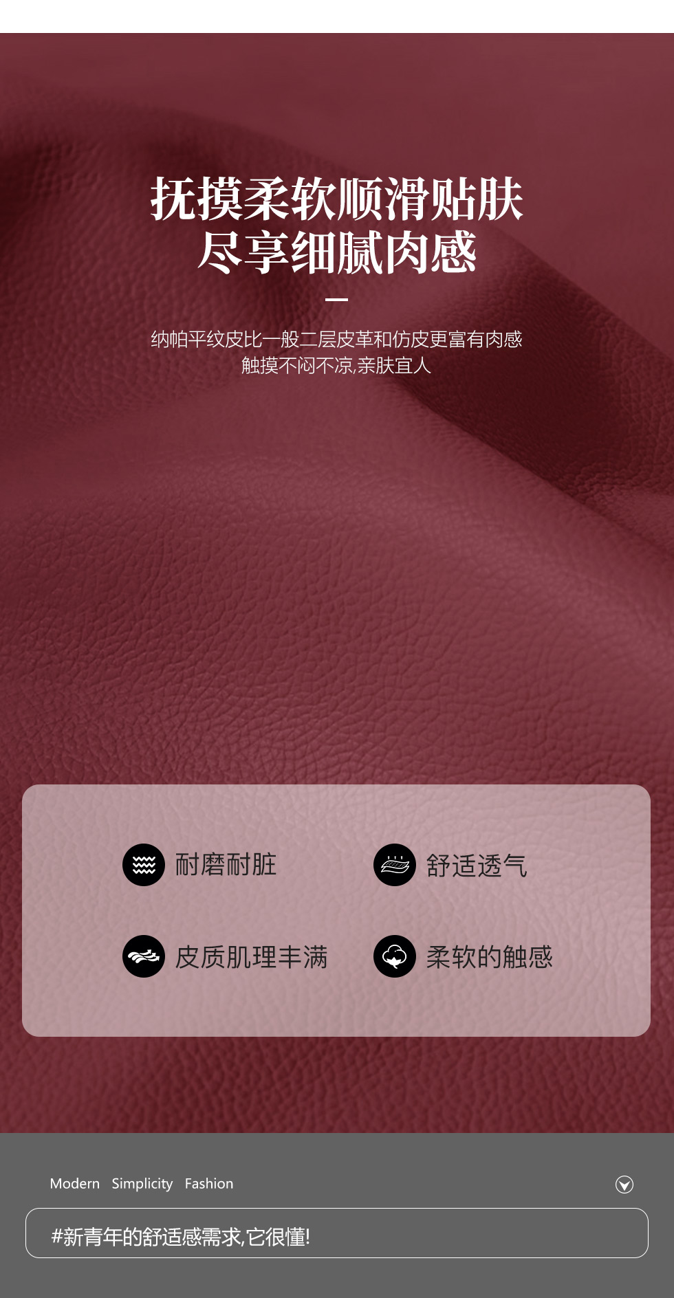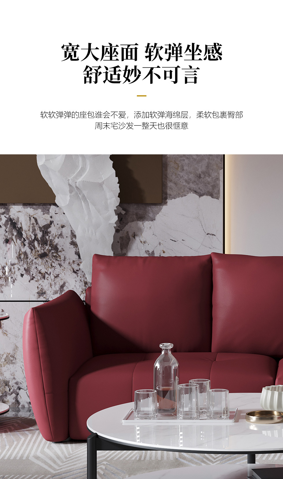 希奥 极简 纳帕平纹皮+40-45密度+五金脚 国潮红 皮艺1.05米沙发 单人位