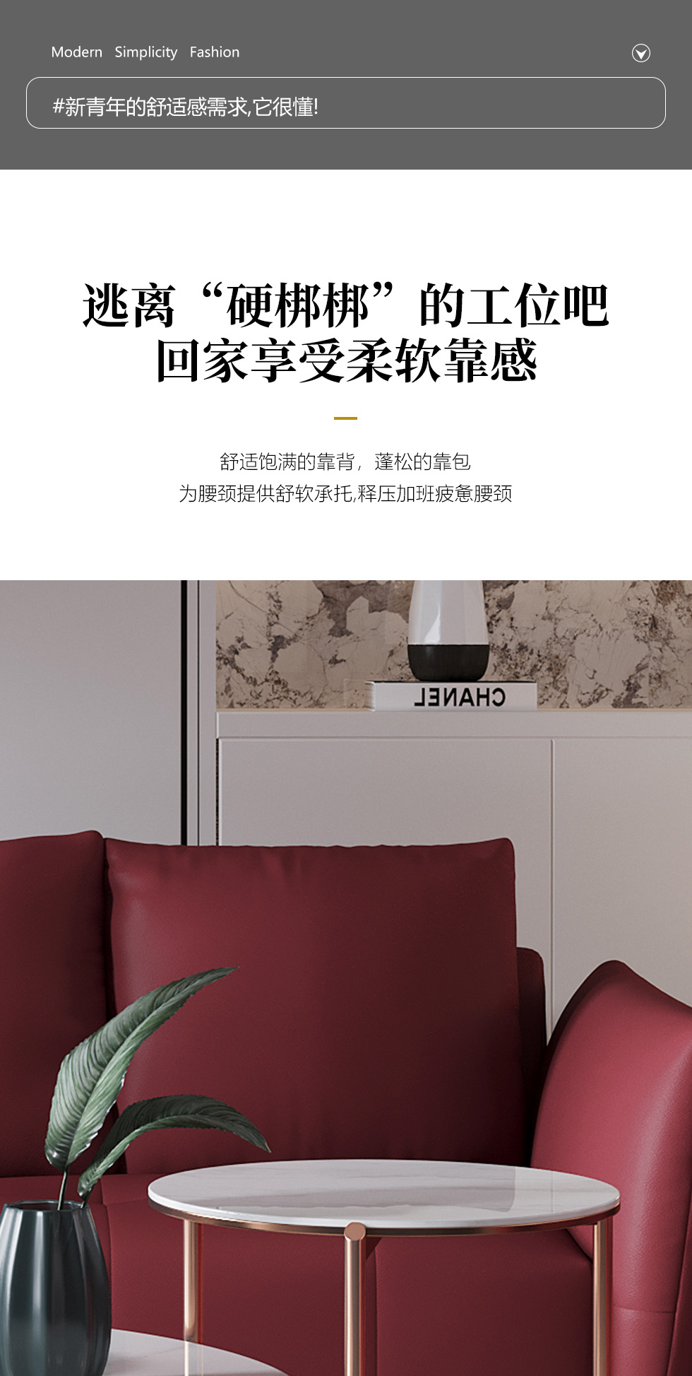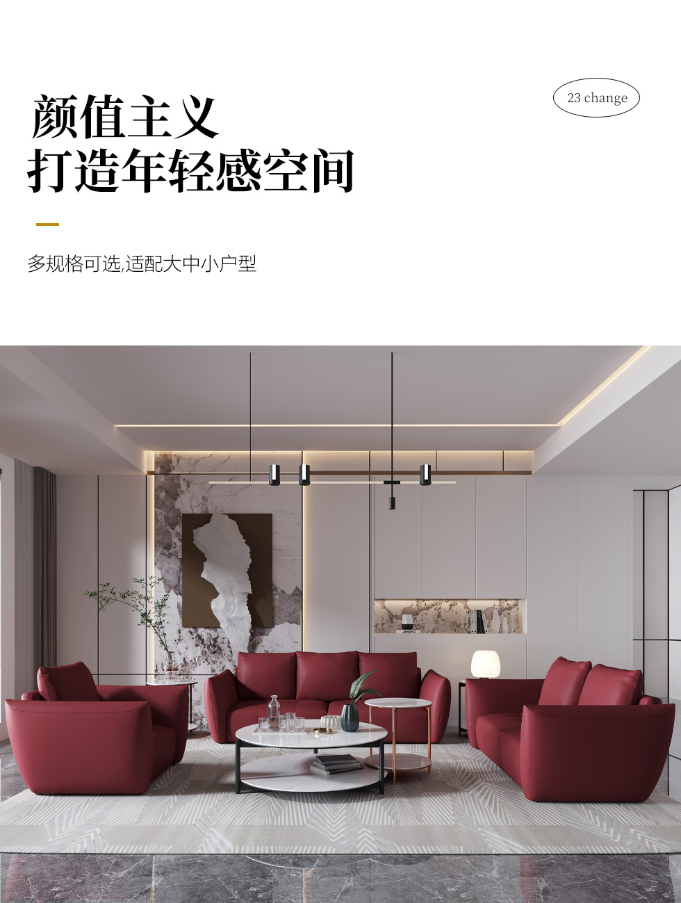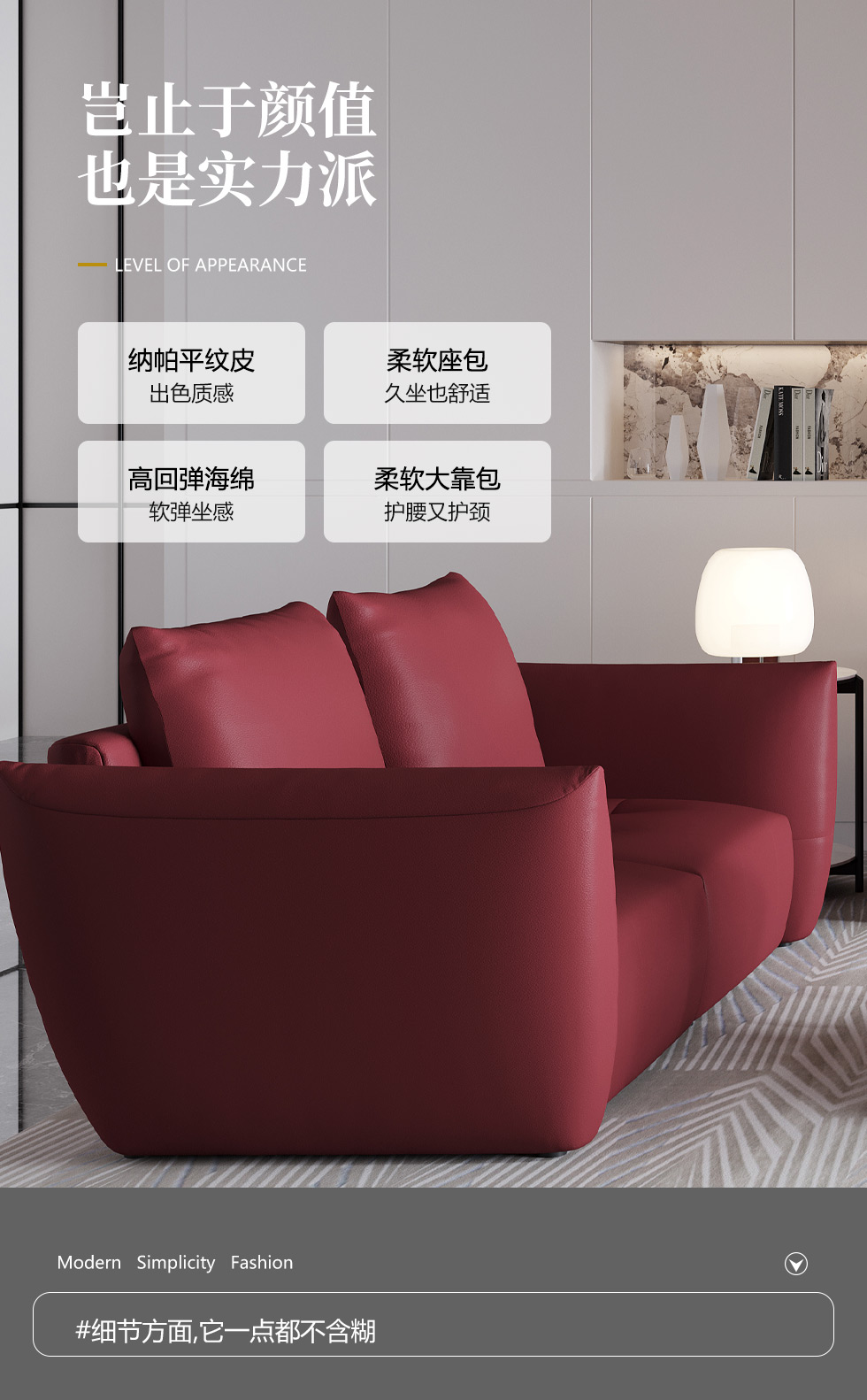 希奥 极简 纳帕平纹皮+40-45密度+五金脚 国潮红 皮艺2.5米沙发 三人位