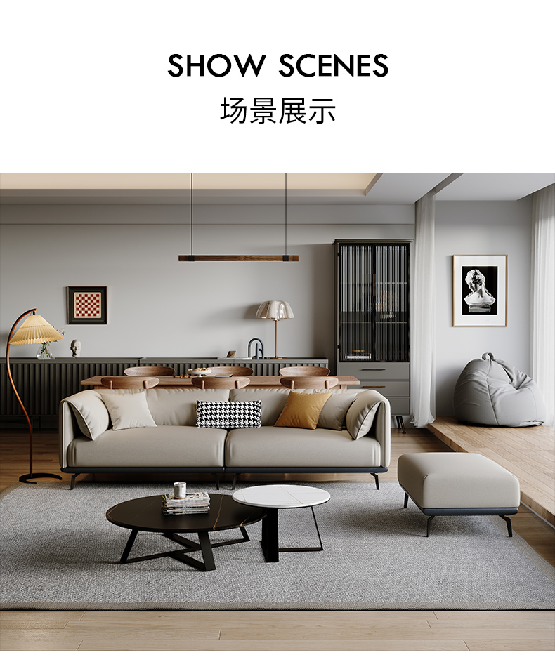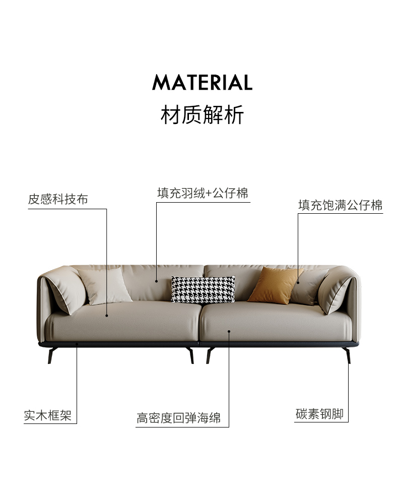 非凡工艺 现代简约 科技布+实木框架+海绵+公仔棉+碳素五金脚 脚踏