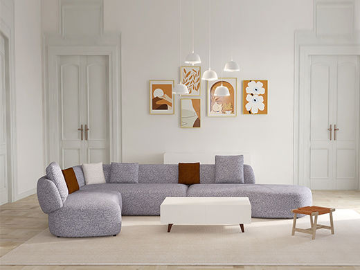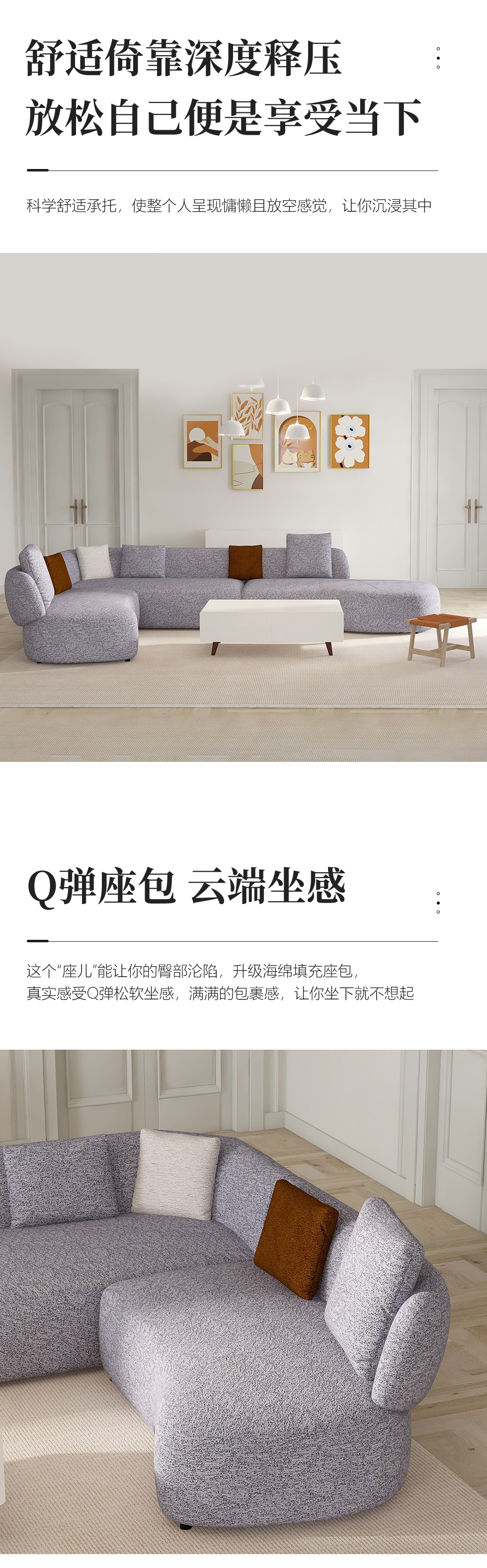 梵纳意简 极简 棉麻布+超纤皮+多层实木板+实木框架+高回弹海绵+不锈钢五金+羽绒 左转角沙发 Q9063.43米沙发¥13495