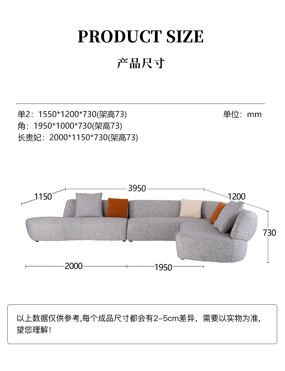 缔造 极简 接触面头层磨砂真皮+高密度海棉+羽绒+碳素钢脚 皮艺转角3米沙发 (右2+左贵)缔造 极简 优质棉麻布+北美白蜡木(做碳灰木色)边框+意大利进口皮+高密度海棉+不锈钢拉丝脚 布艺1.92米沙发 贵妃椅条凳