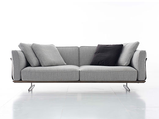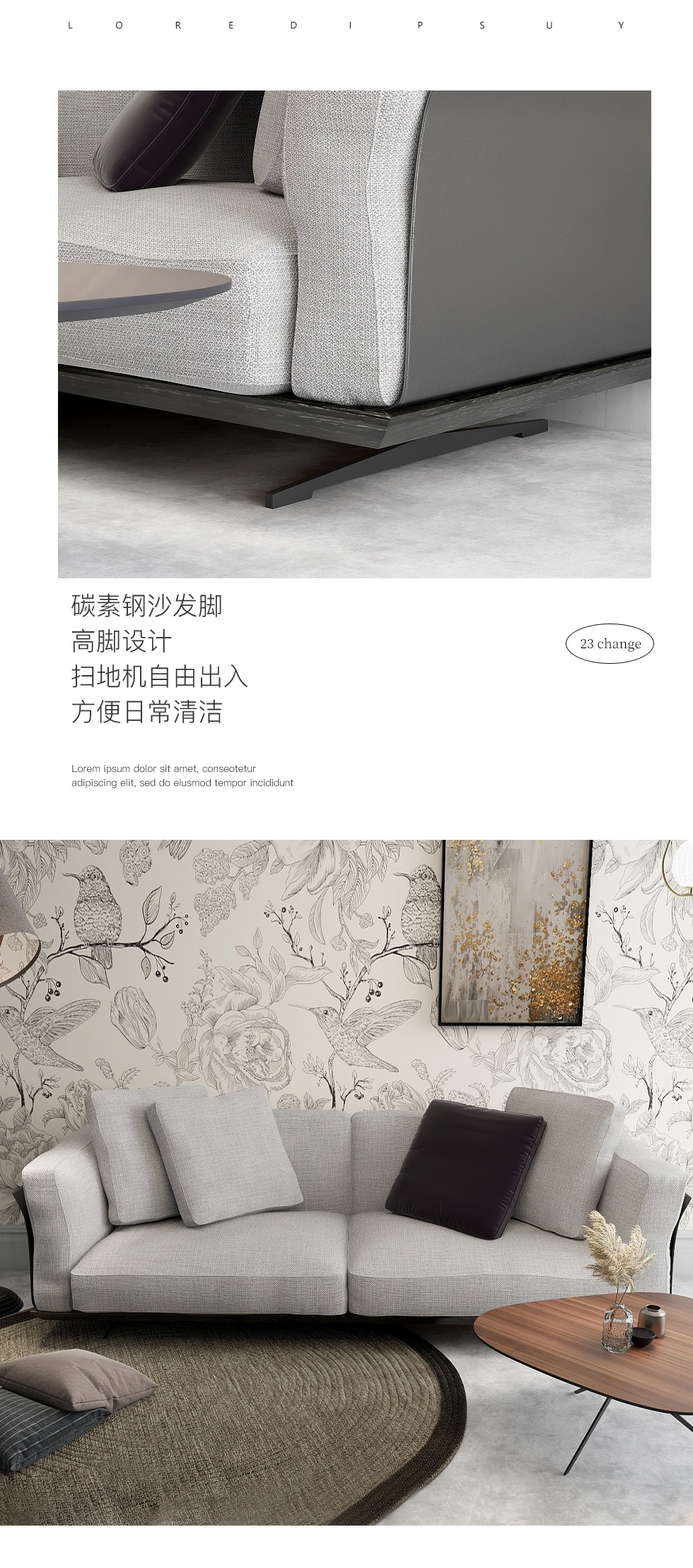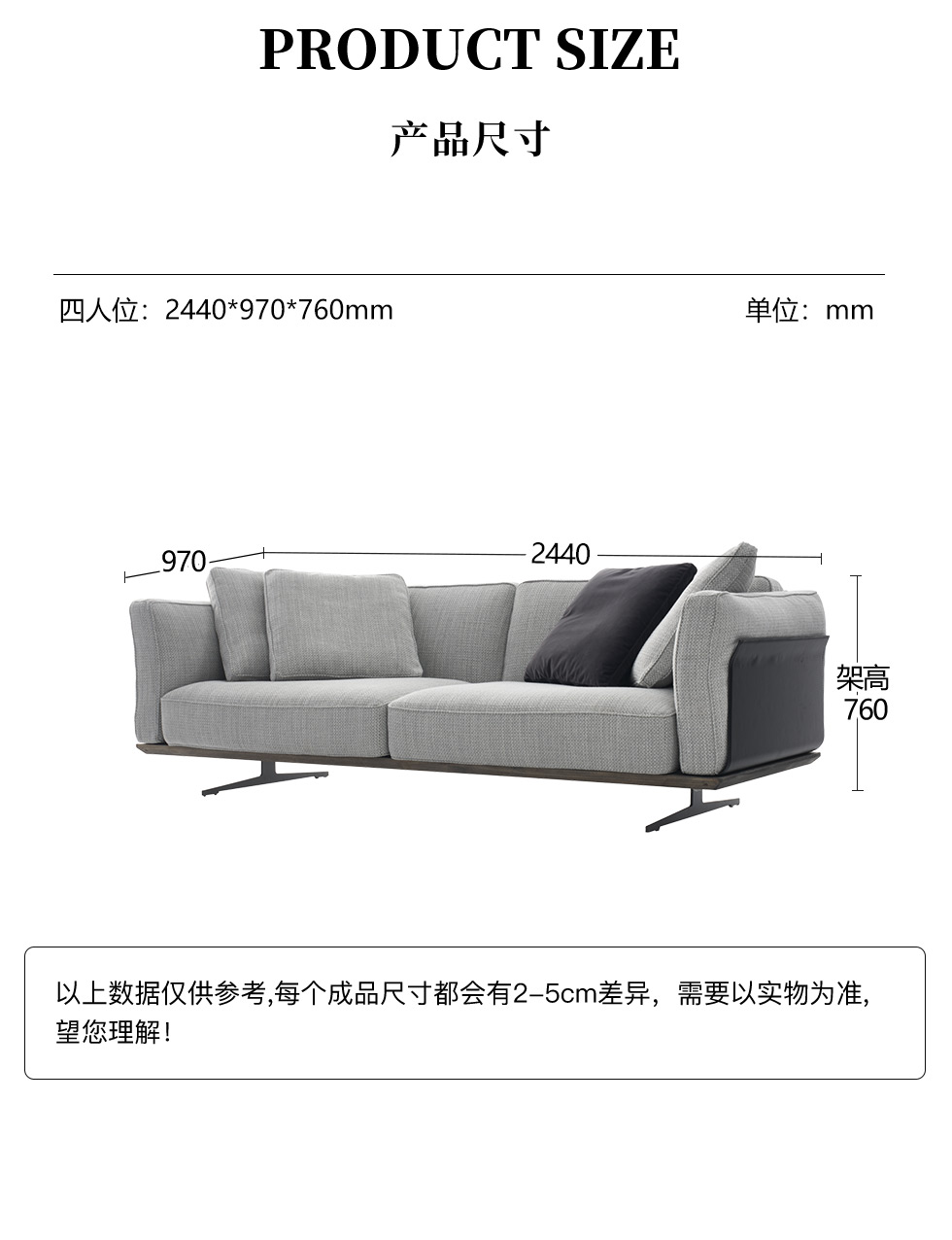 缔造 极简 优质棉麻布+北美白蜡木(做碳灰木色)边框+意大利进口皮+高密度海棉+不锈钢拉丝脚 布艺1.92米沙发 贵妃椅条凳