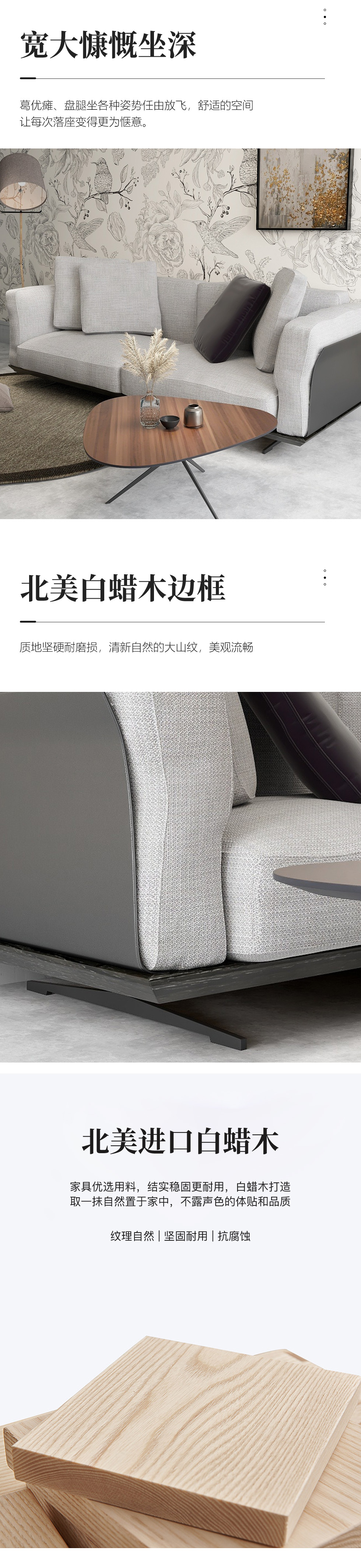缔造 极简 优质棉麻布+羽绒+高密度海棉+碳素钢脚+北美白蜡木(做碳灰木色)边框+铁片包马铵硬皮 布艺转角3.19米沙发 (右3+左贵)¥10268