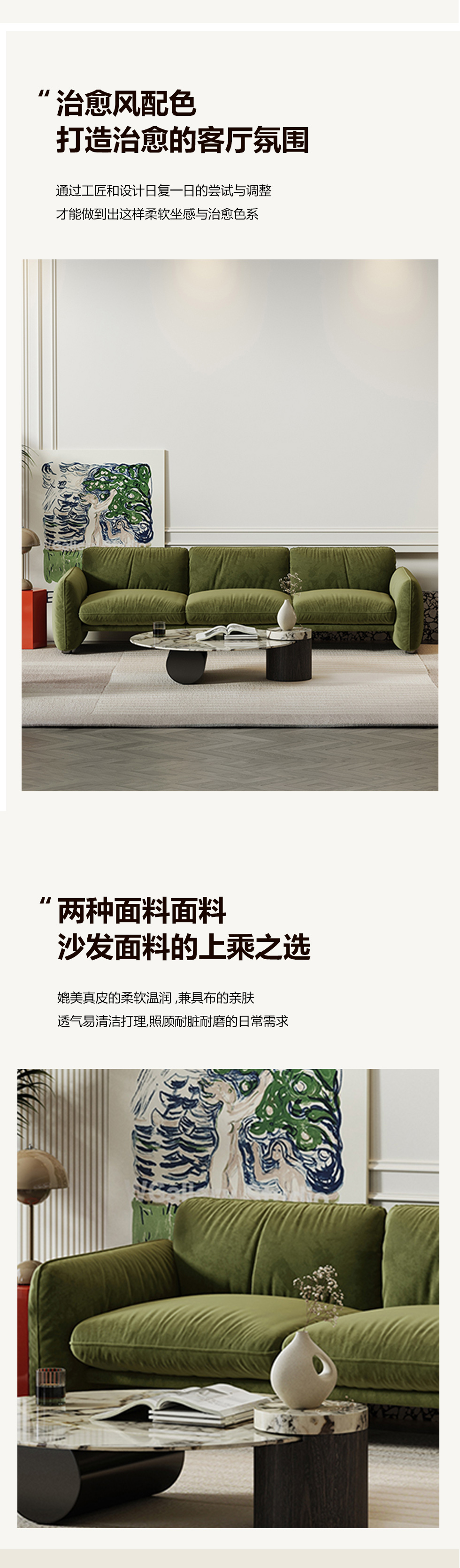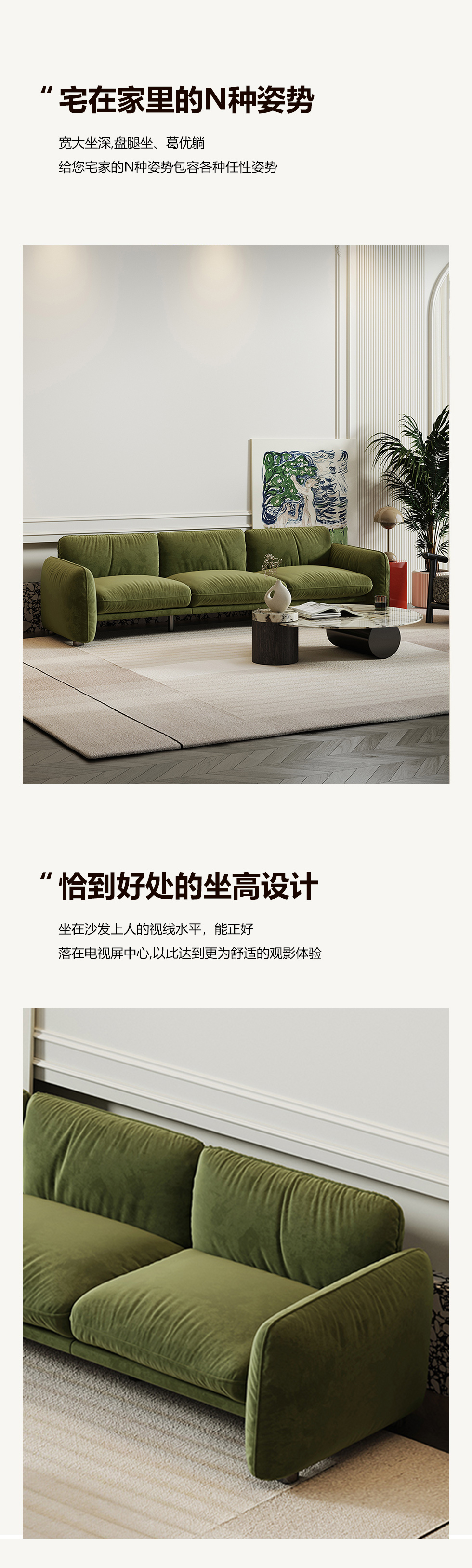 鹿屿 奶油风 磨砂科技布MT8559-系列(全)+实木框架+高回弹海绵+磨砂科技布+五金脚 布艺沙发 网红直排悬浮四人位2.8米沙发(含抱枕)