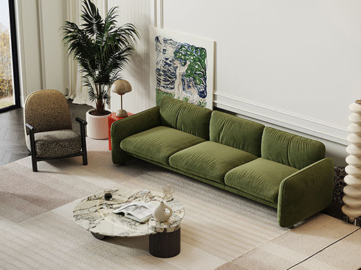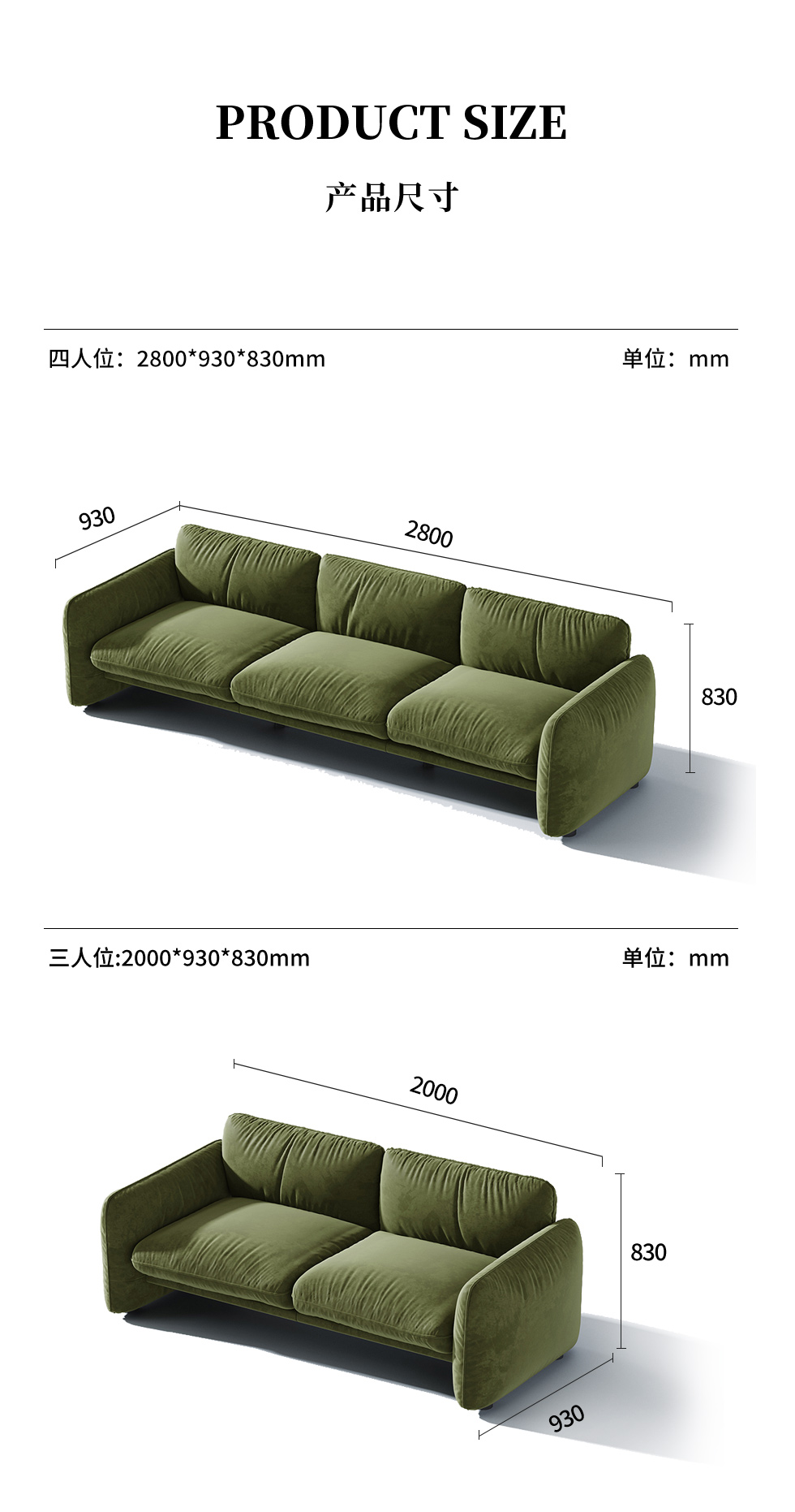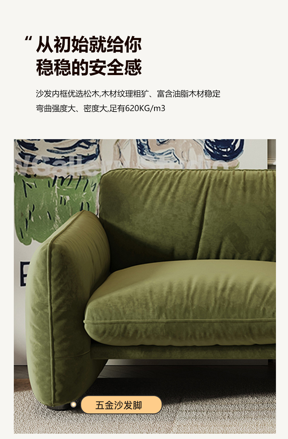 Minttu明途 现代简约 落叶松实木框架+高回弹海绵+靠背扶手内外公仔棉填充+优质羊羔绒面料 布艺沙发 网红棉花糖四人位2.8米沙发