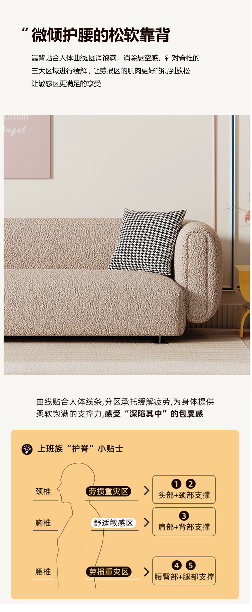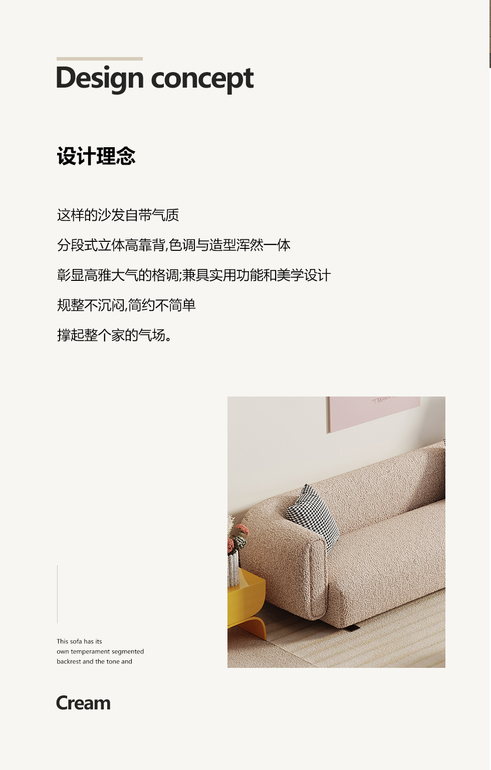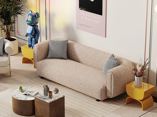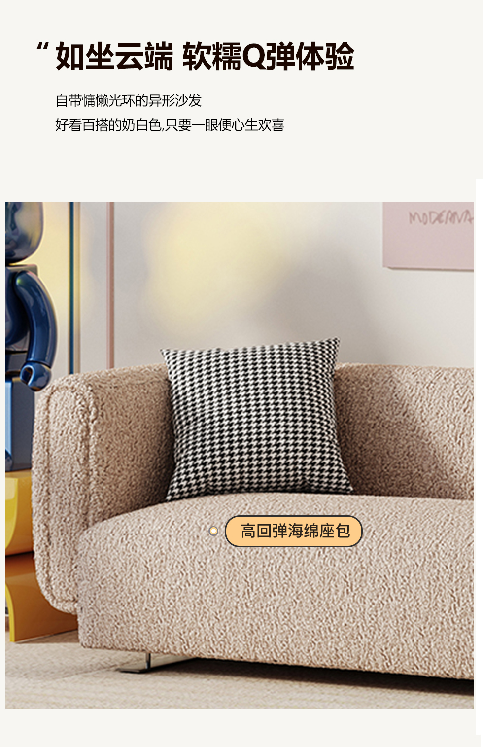 云端 奶油风 羊羔绒布料+抛光实木内架+合成板材框架+坐包填充高密度纯海绵+5公分实木圆脚 米白色 2.7米四人位+圆凳¥4660