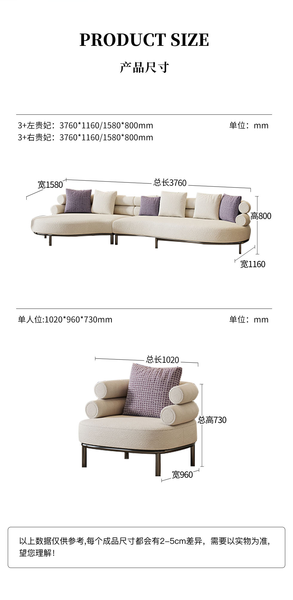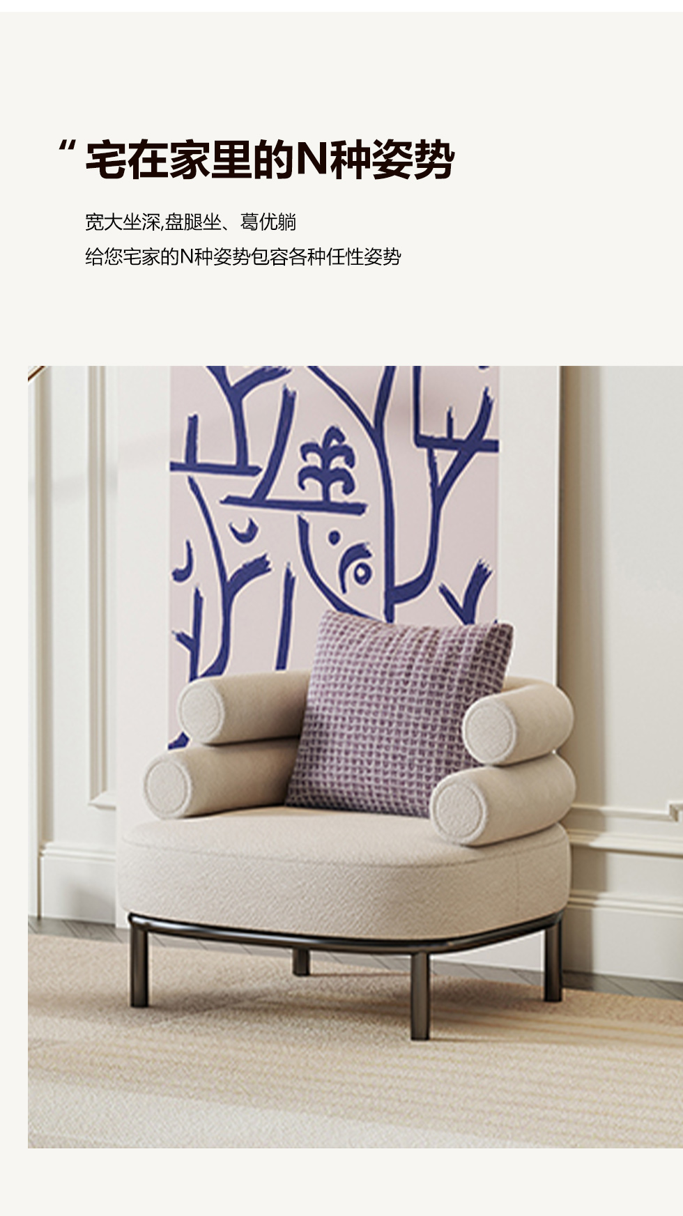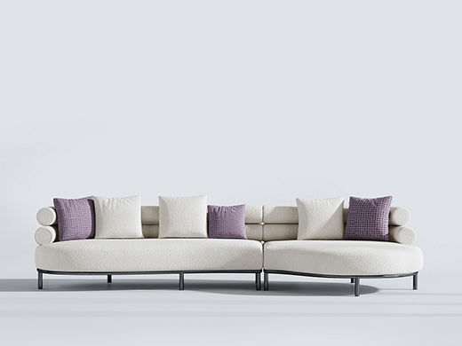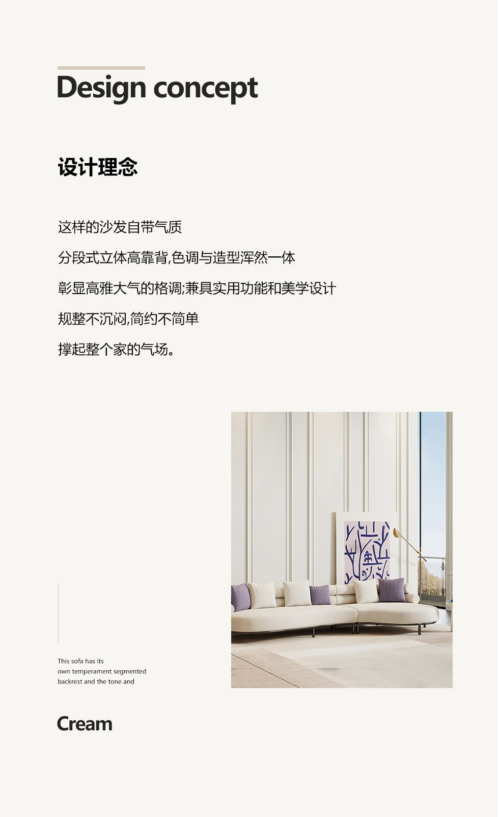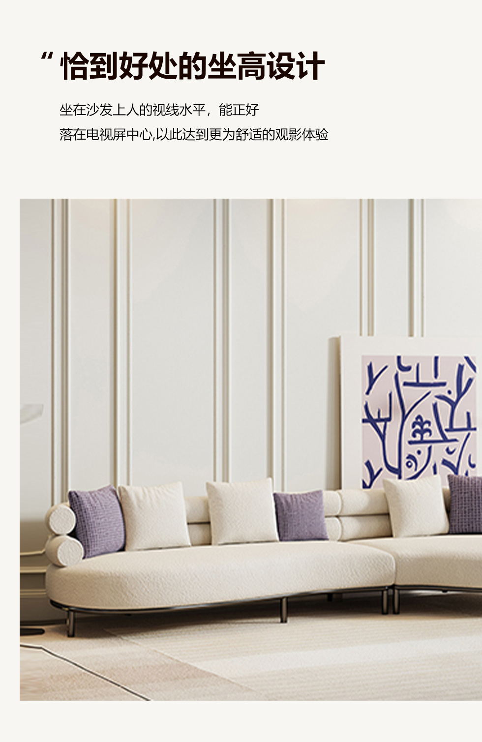 云端 奶油风 羊羔绒布料+抛光实木内架+合成板材框架+坐包填充高密度纯海绵+5公分实木圆脚 米白色 2.7米四人位+圆凳¥4660